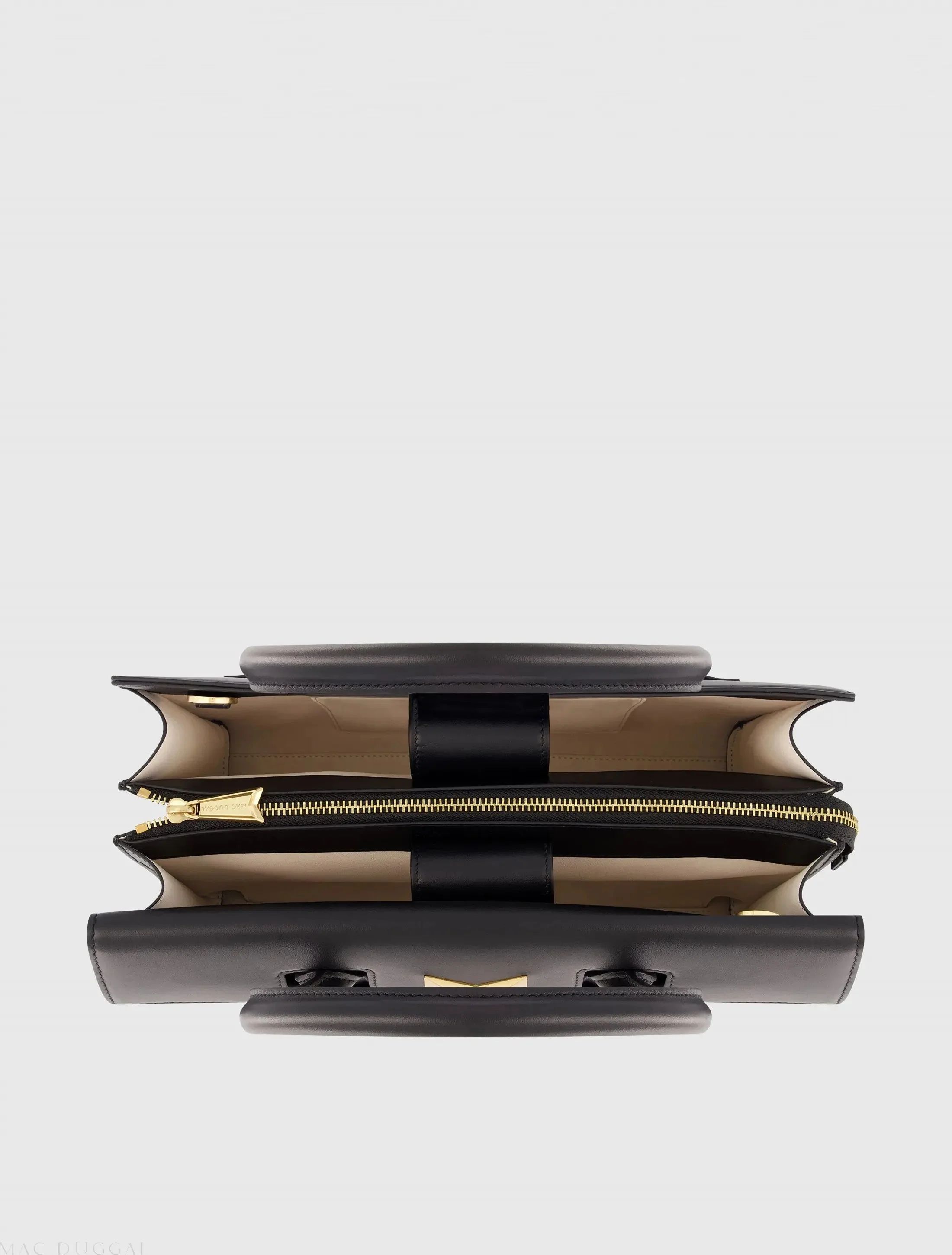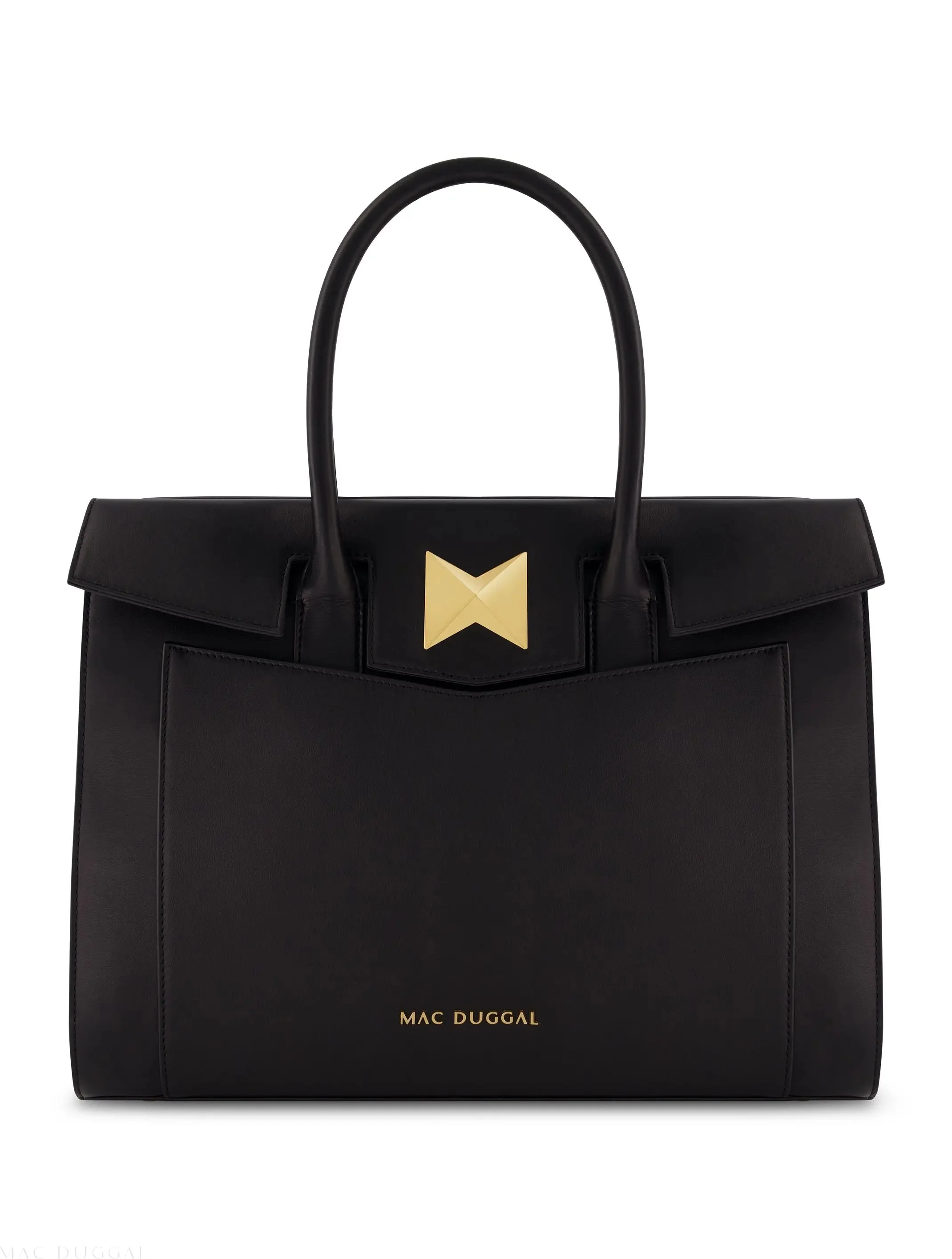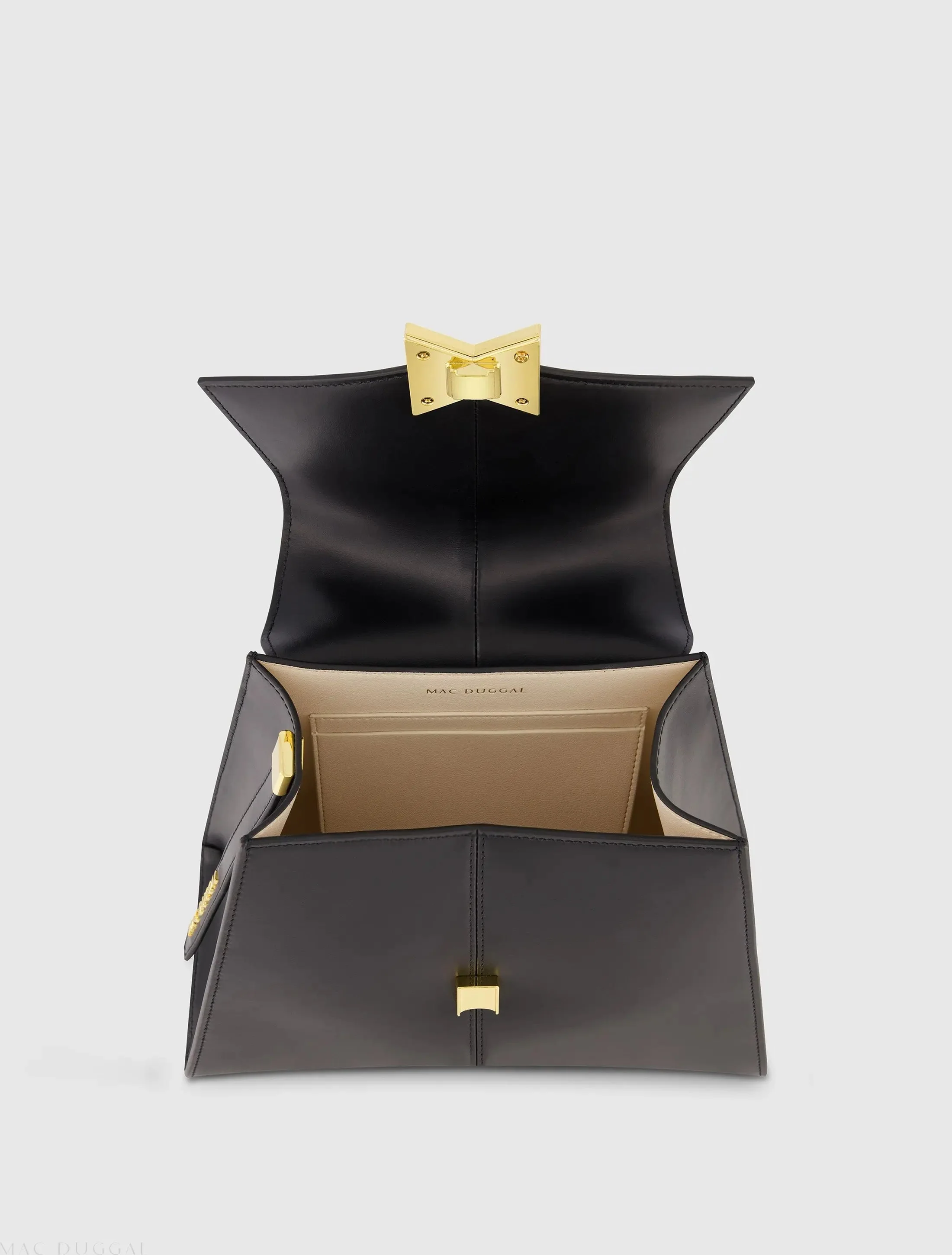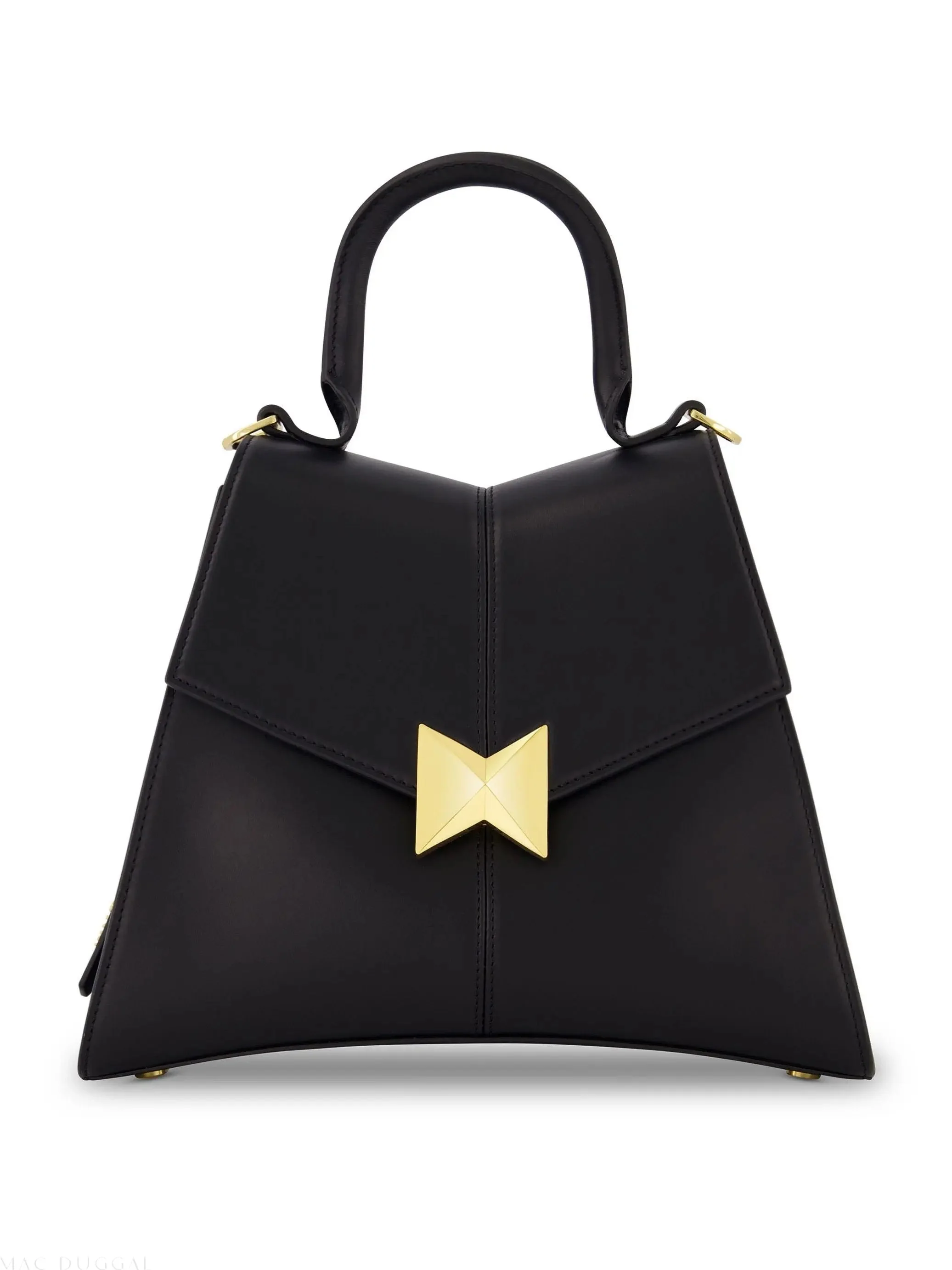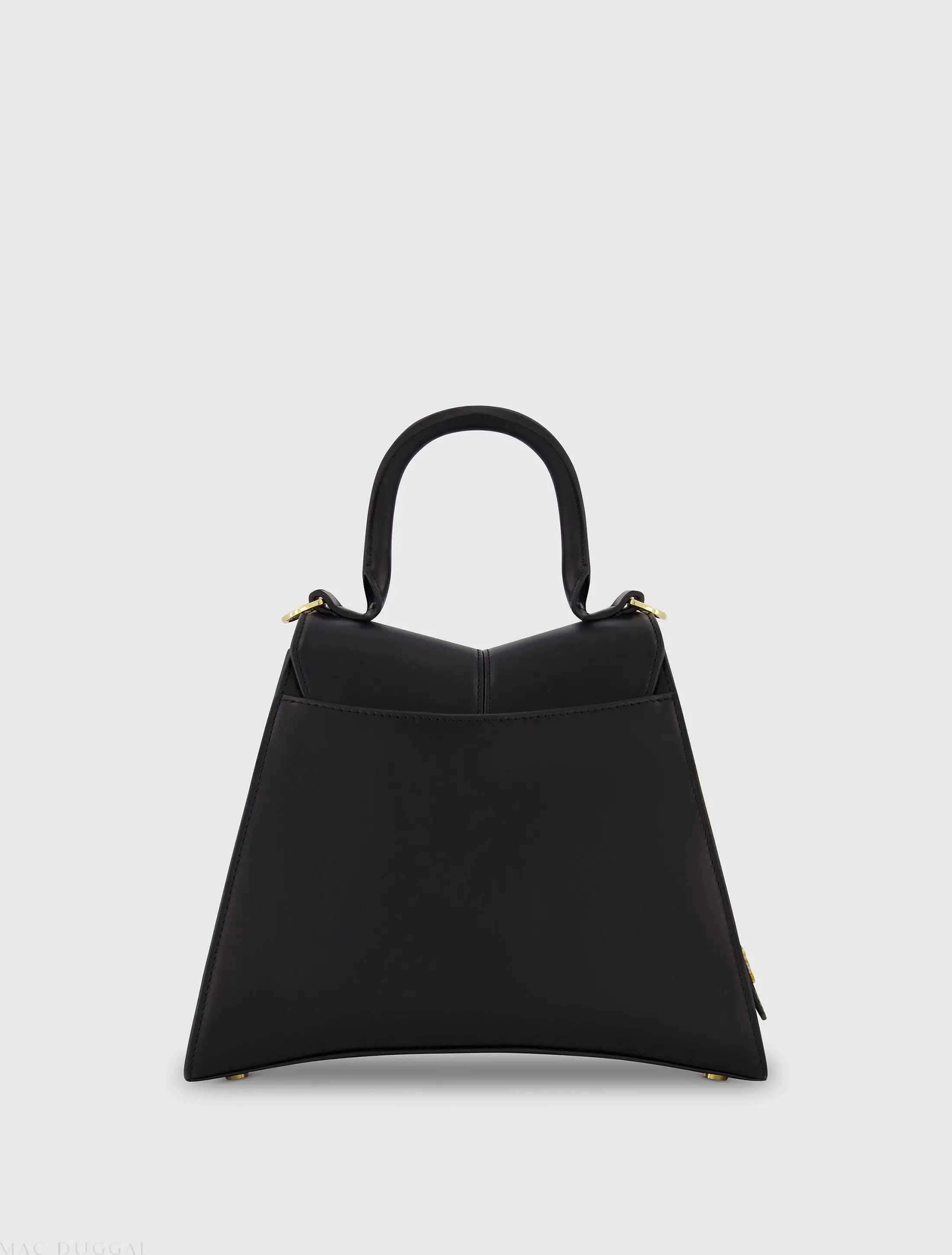 Black Medium Angular Leather Handbag With Gold Hardware