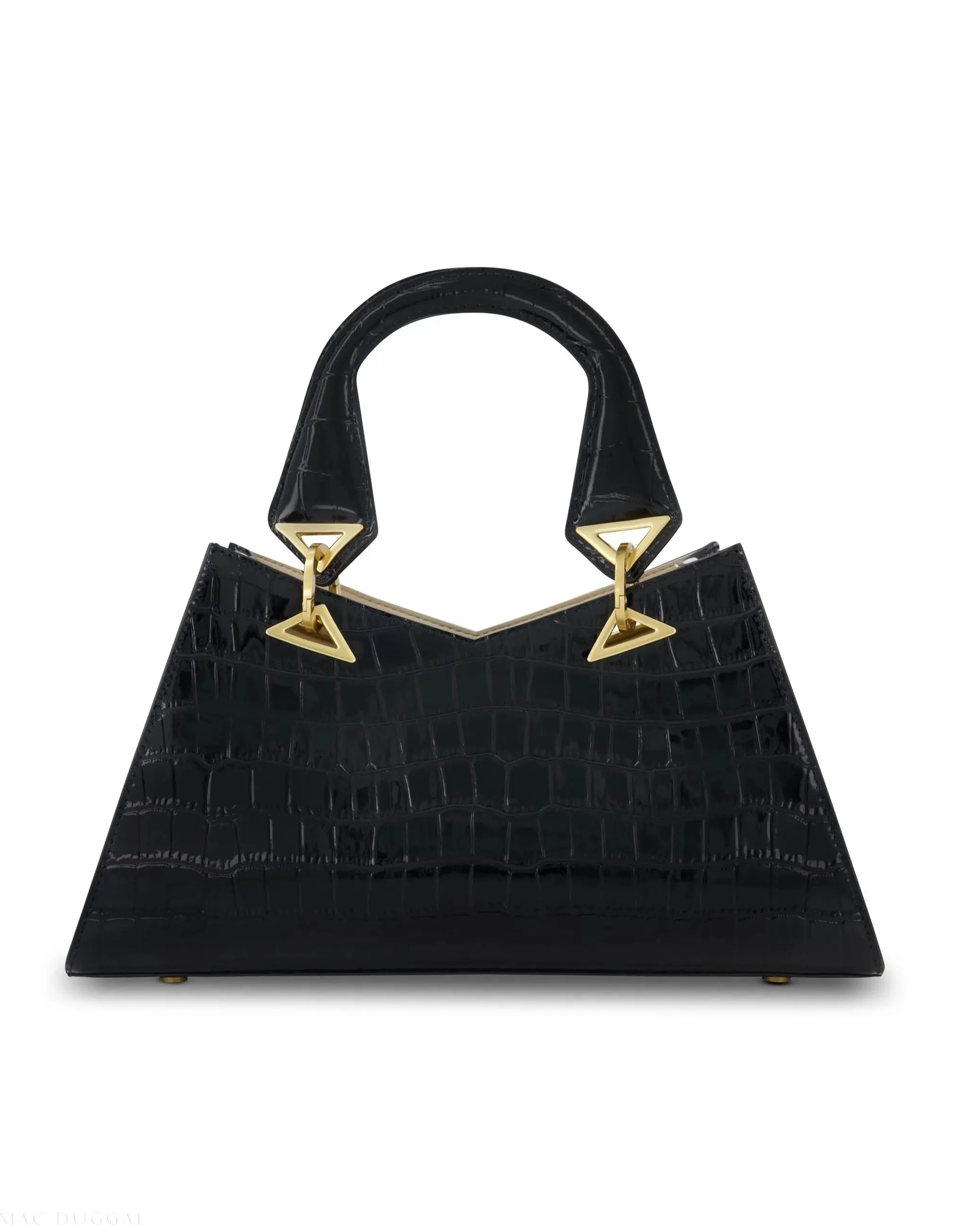 Black Crocodile Leather Handbag With Gold Hardware