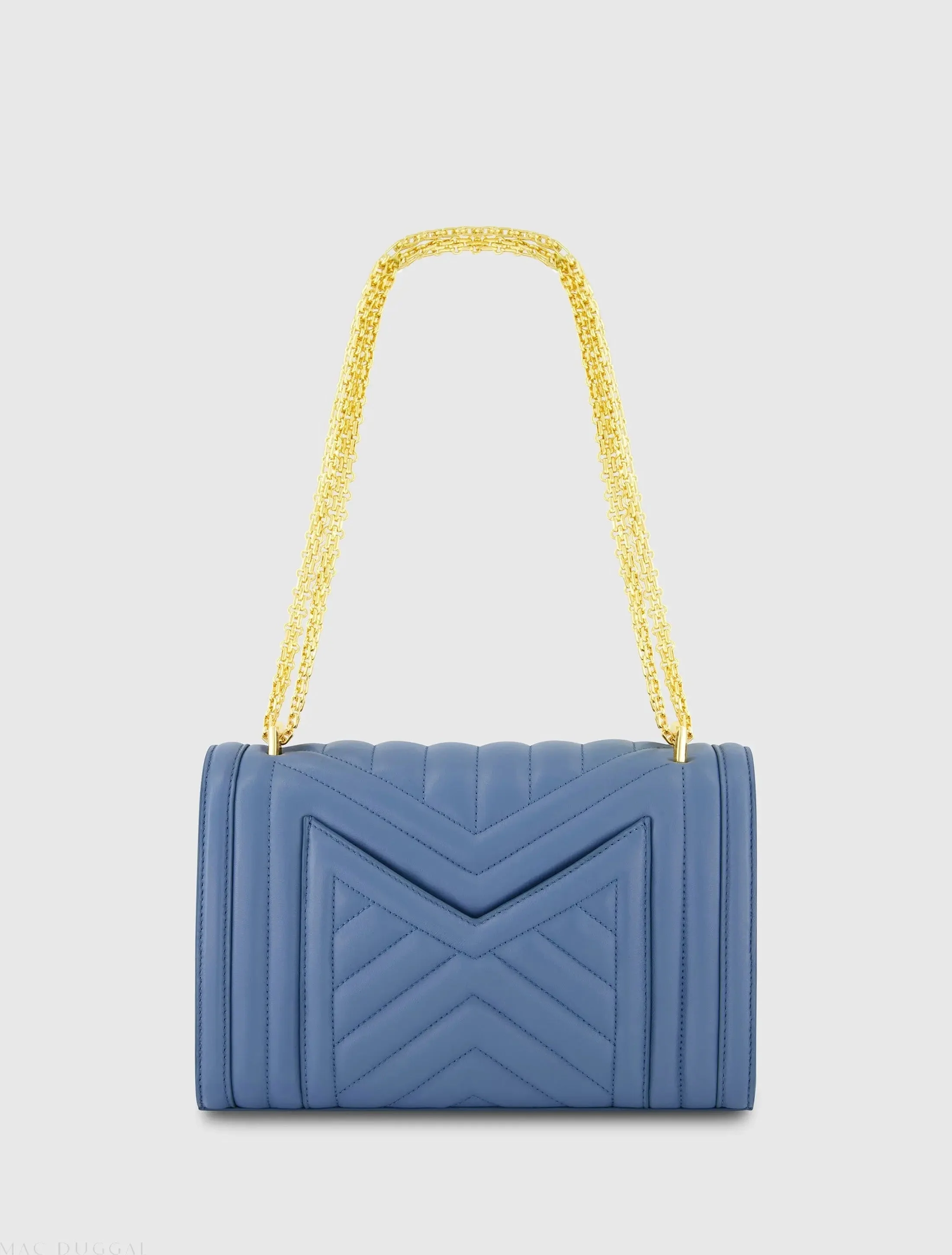 Blue Quilted Napa Leather Handbag With Gold Chain