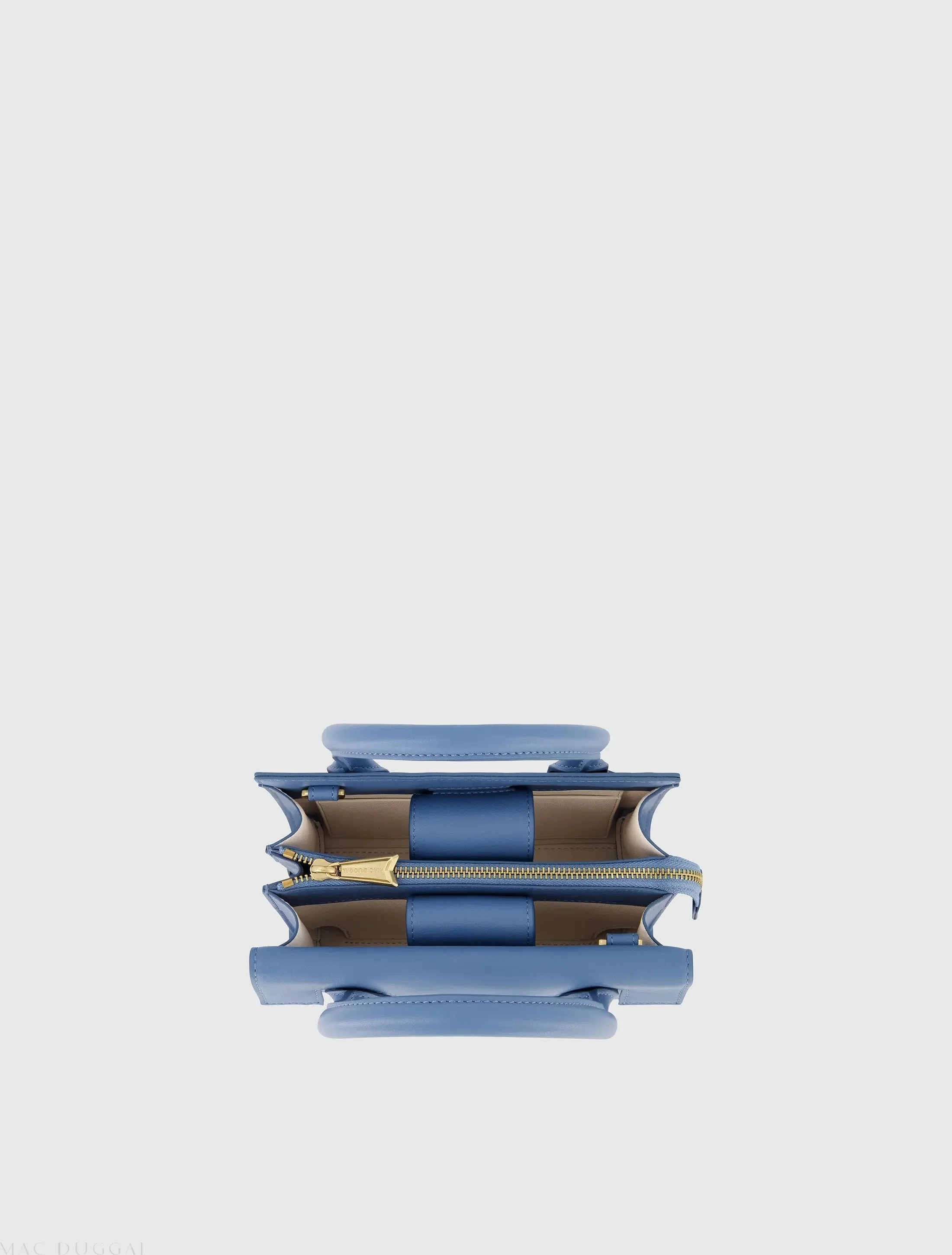 Blue Small Leather Tote Bag With Gold Hardware - FINAL SALE