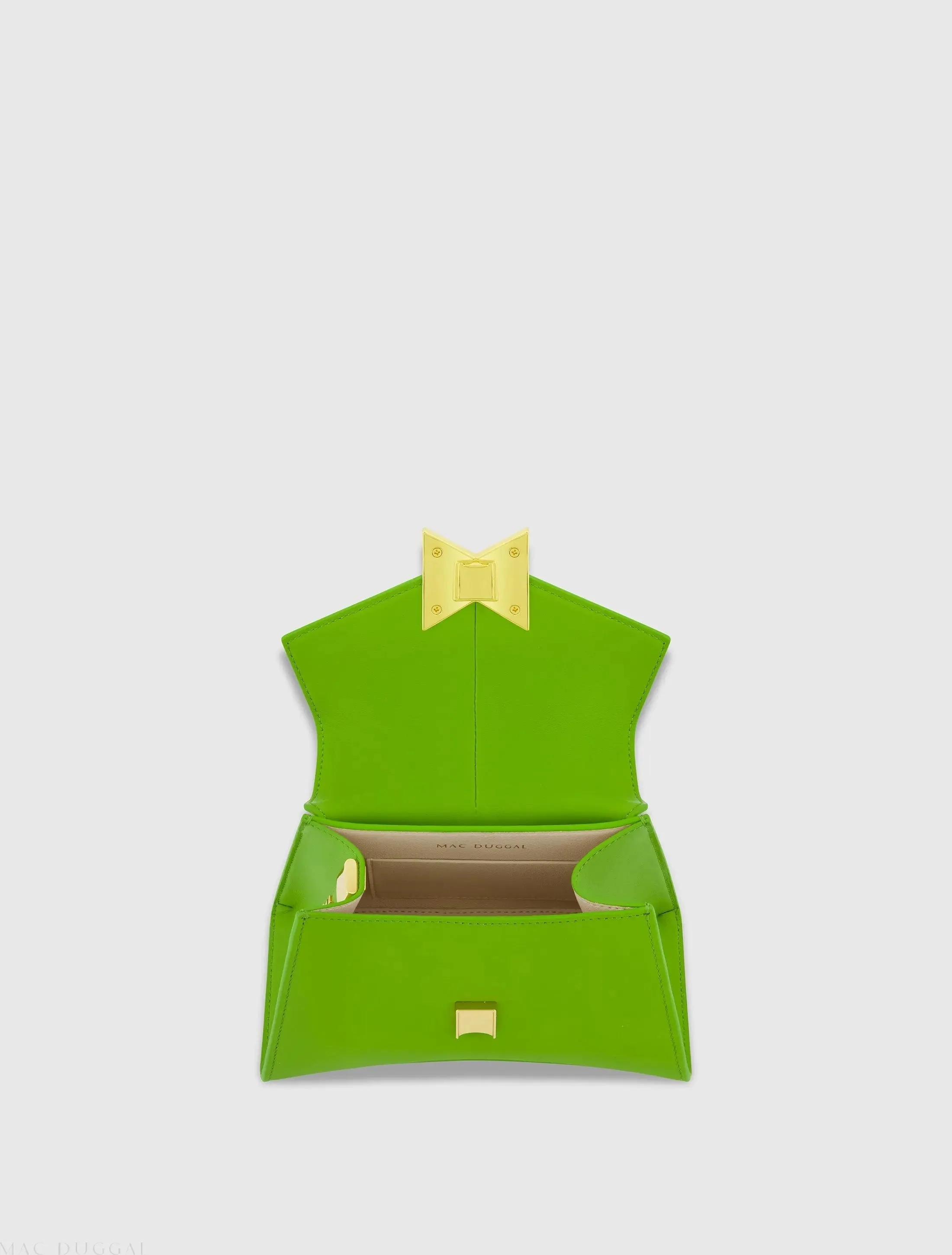 Green Angular Mini Leather Handbag With Gold Hardware