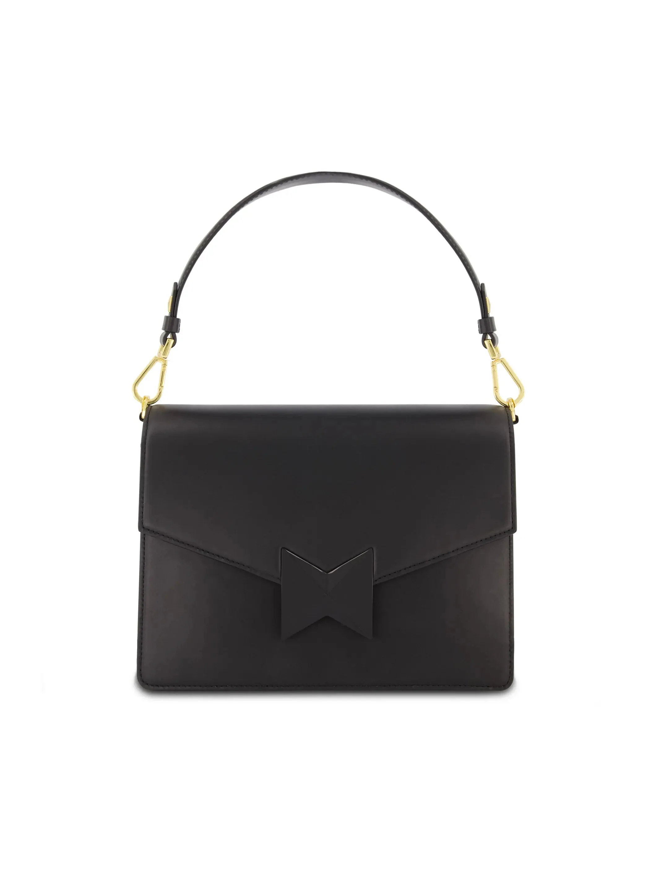 Angular Small Leather Handbag With Gold Hardware