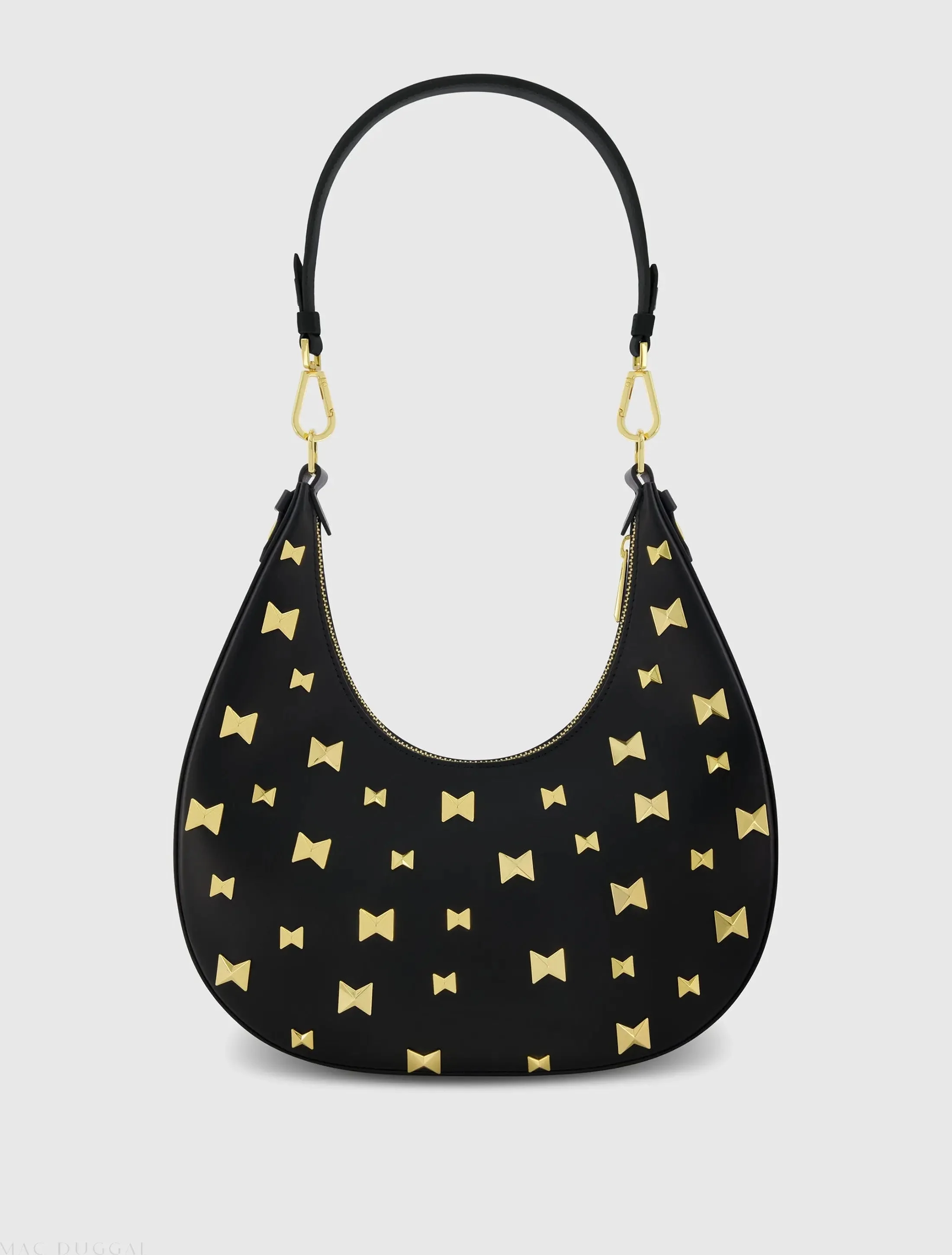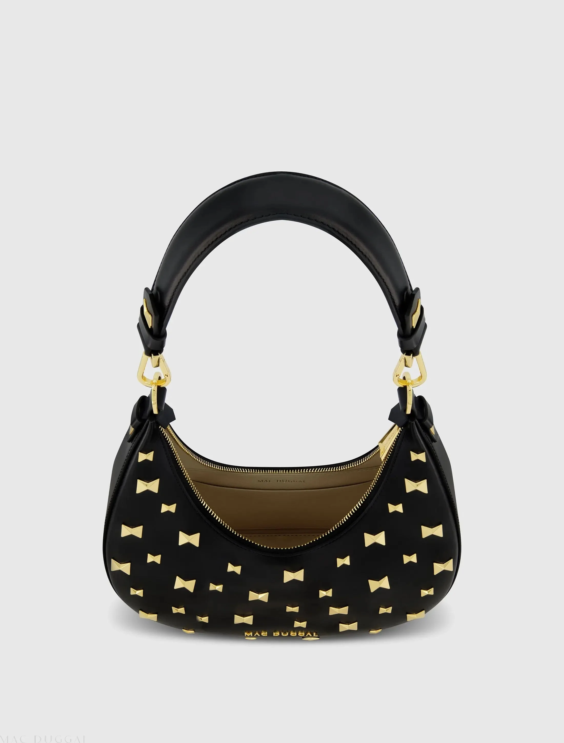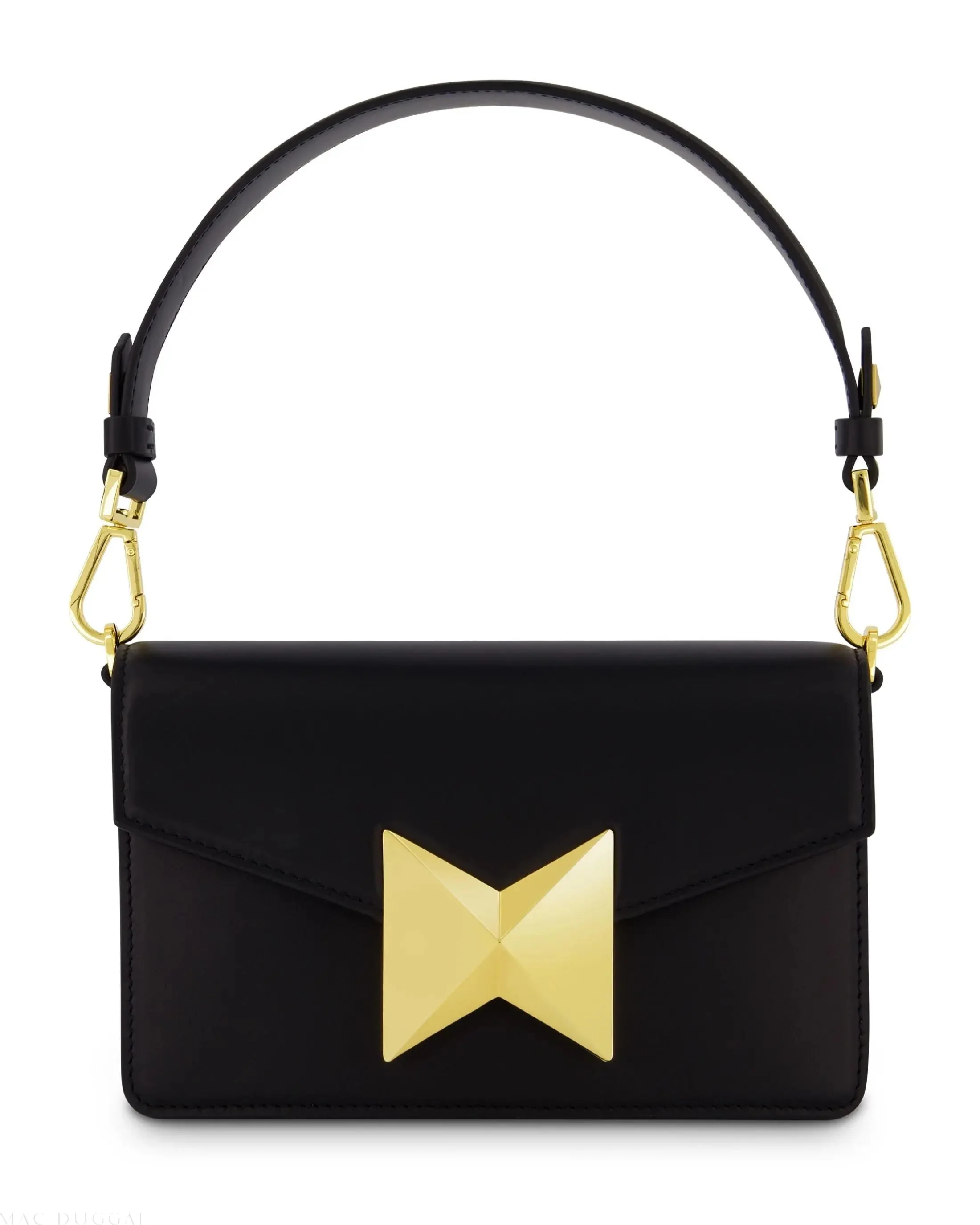 Black Mini Leather Shoulder Handbag With Gold Hardware