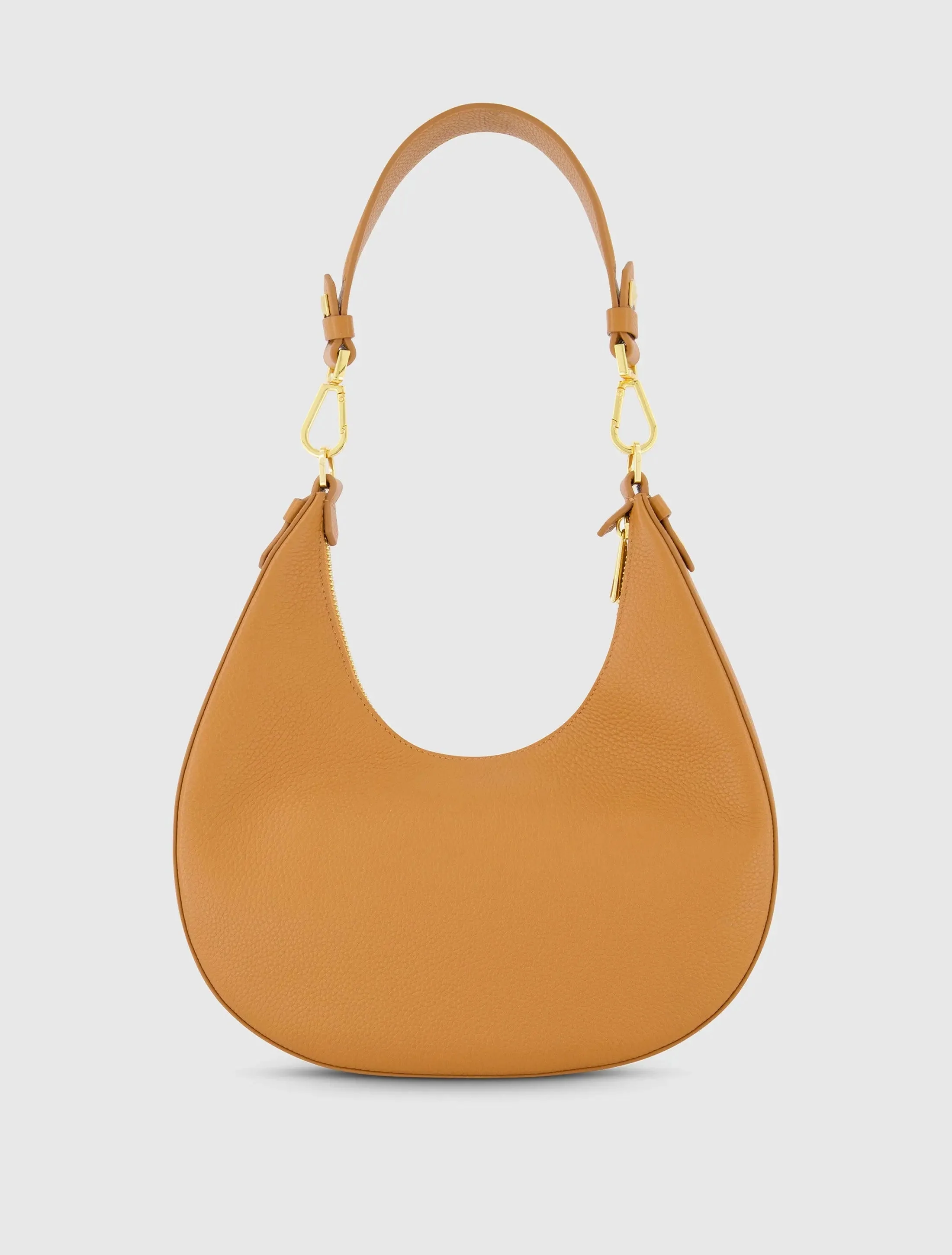 Brown Grain Leather Hobo Bag With Gold Hardware