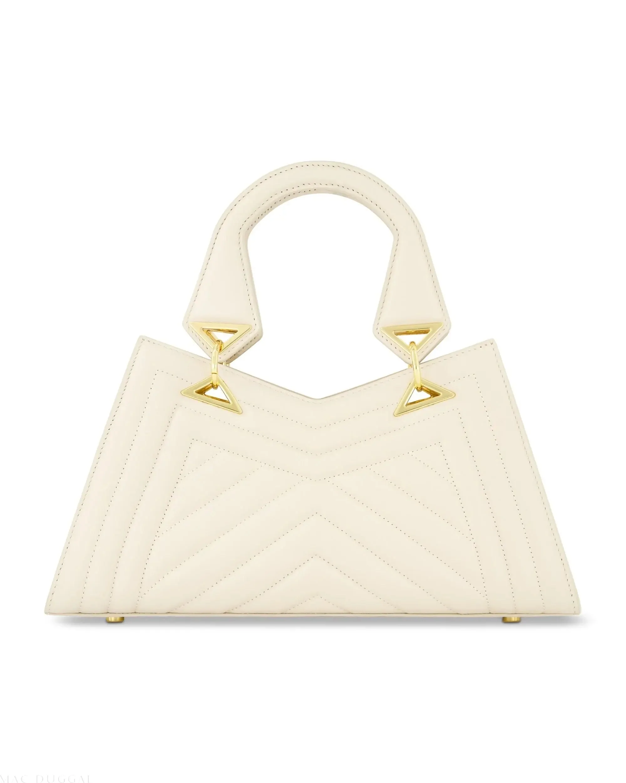 White Quilted Napa Leather Angular Handbag
