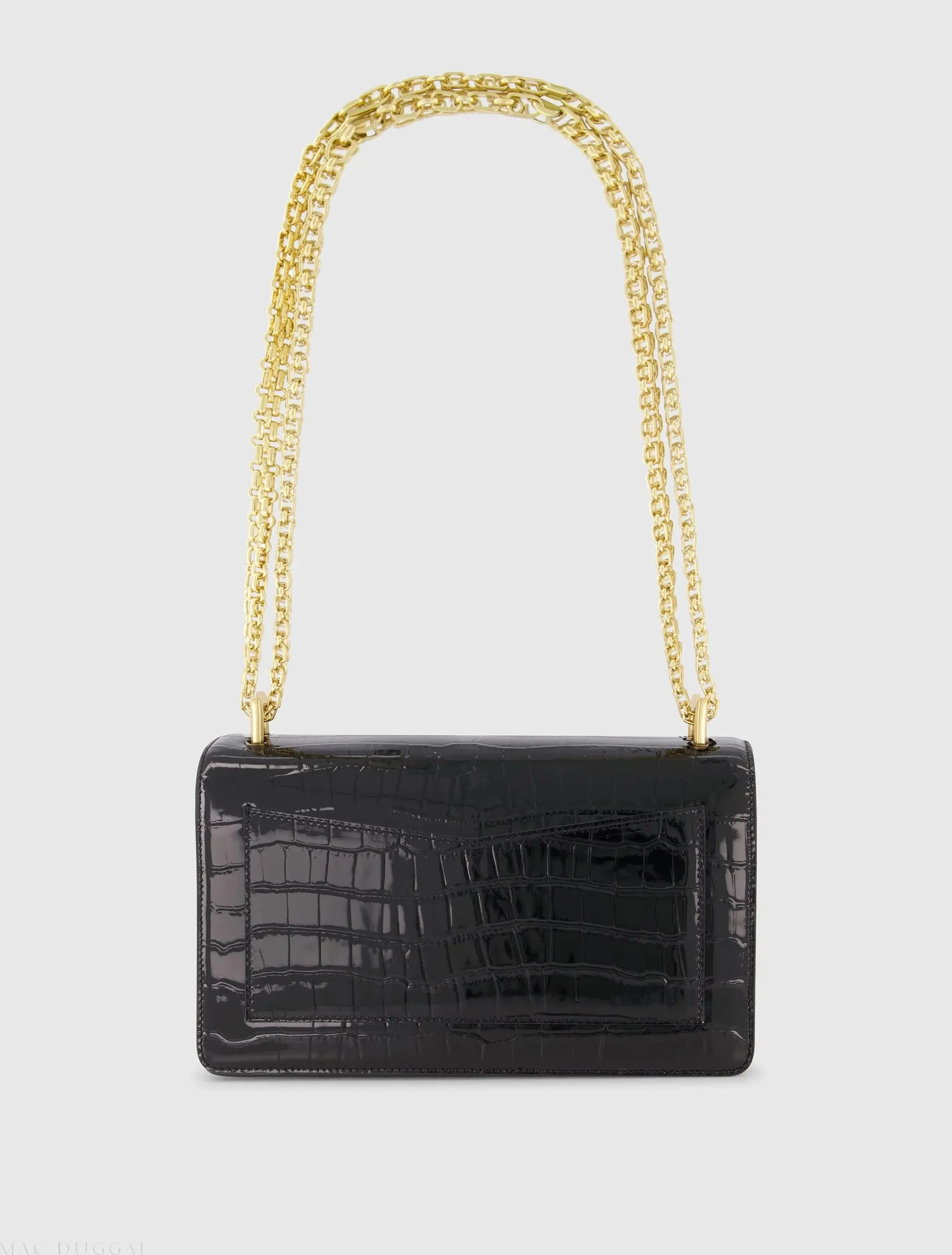 Black Crocodile Leather Shoulder Bag With Gold Hardware
