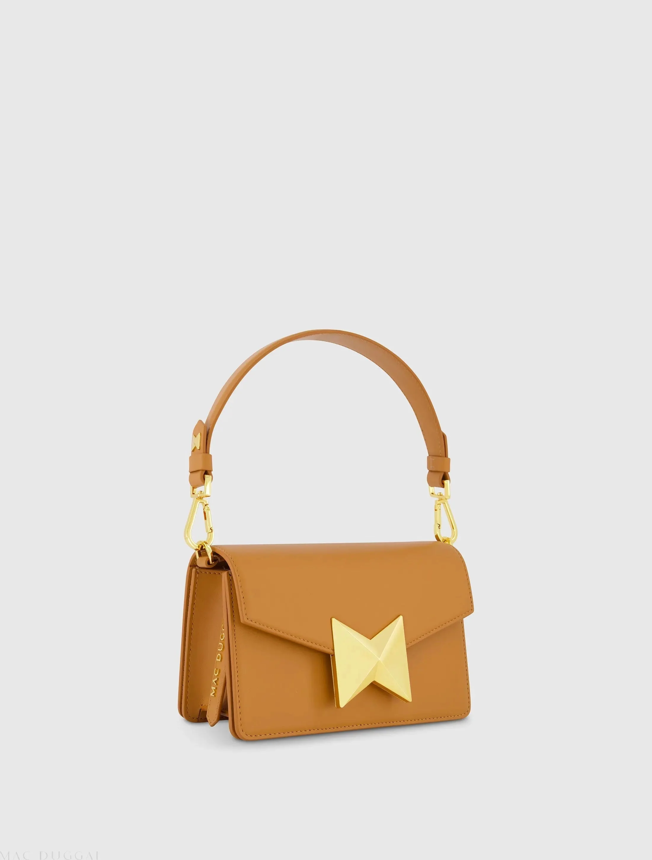 Brown Mini Leather Shoulder Handbag With Gold Hardware - FINAL SALE
