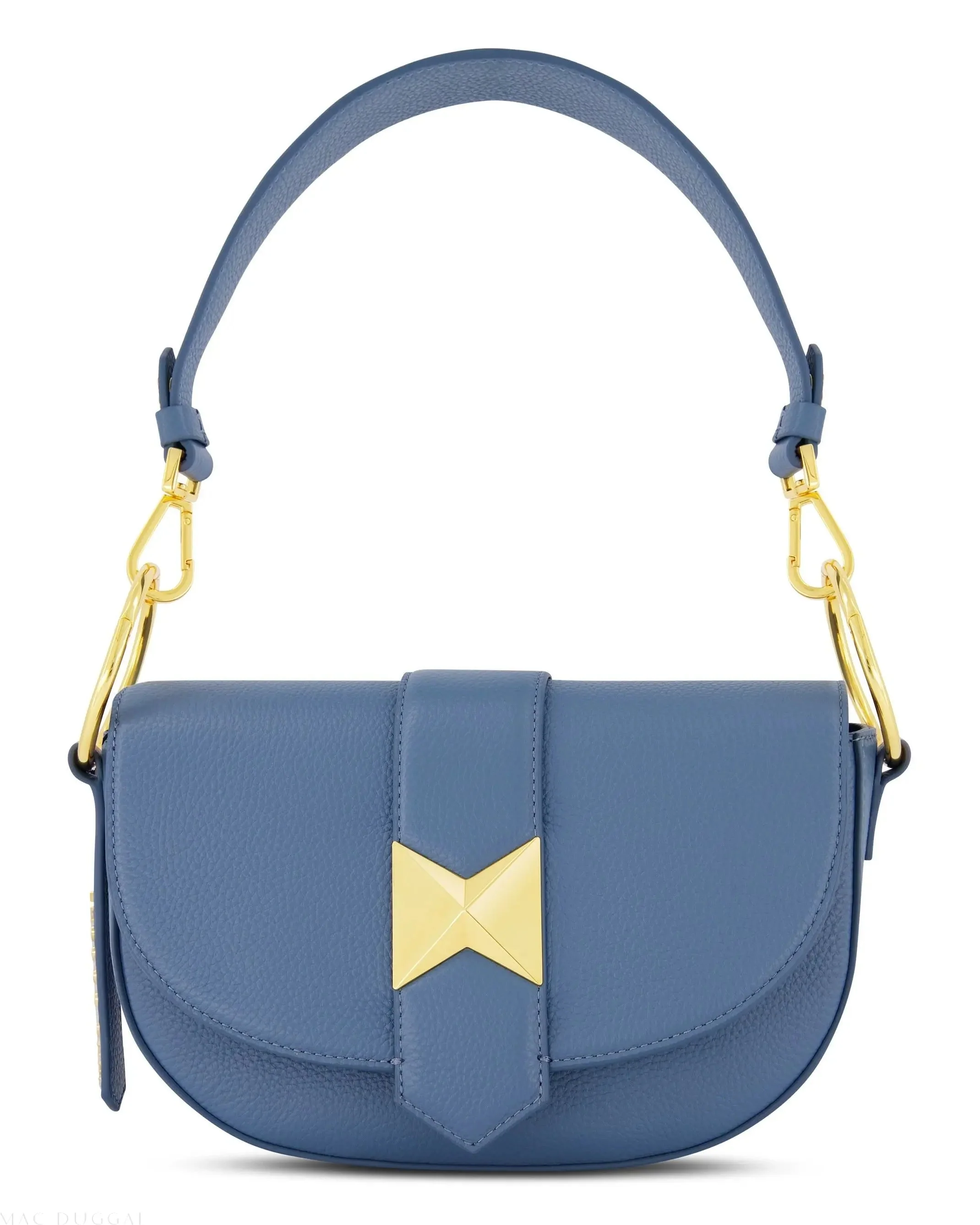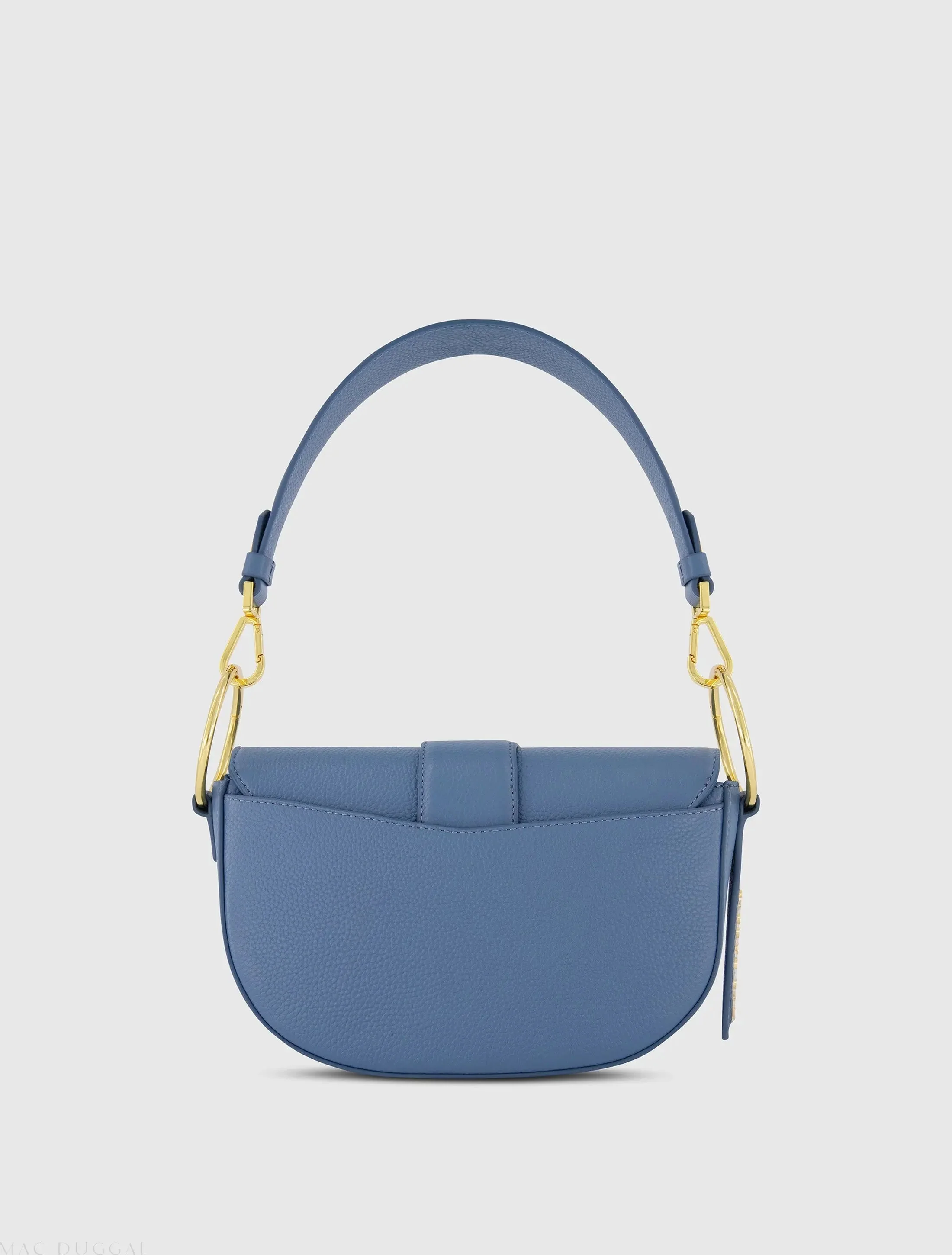 Blue Grain Leather Saddle Bag With Gold Hardware - FINAL SALE