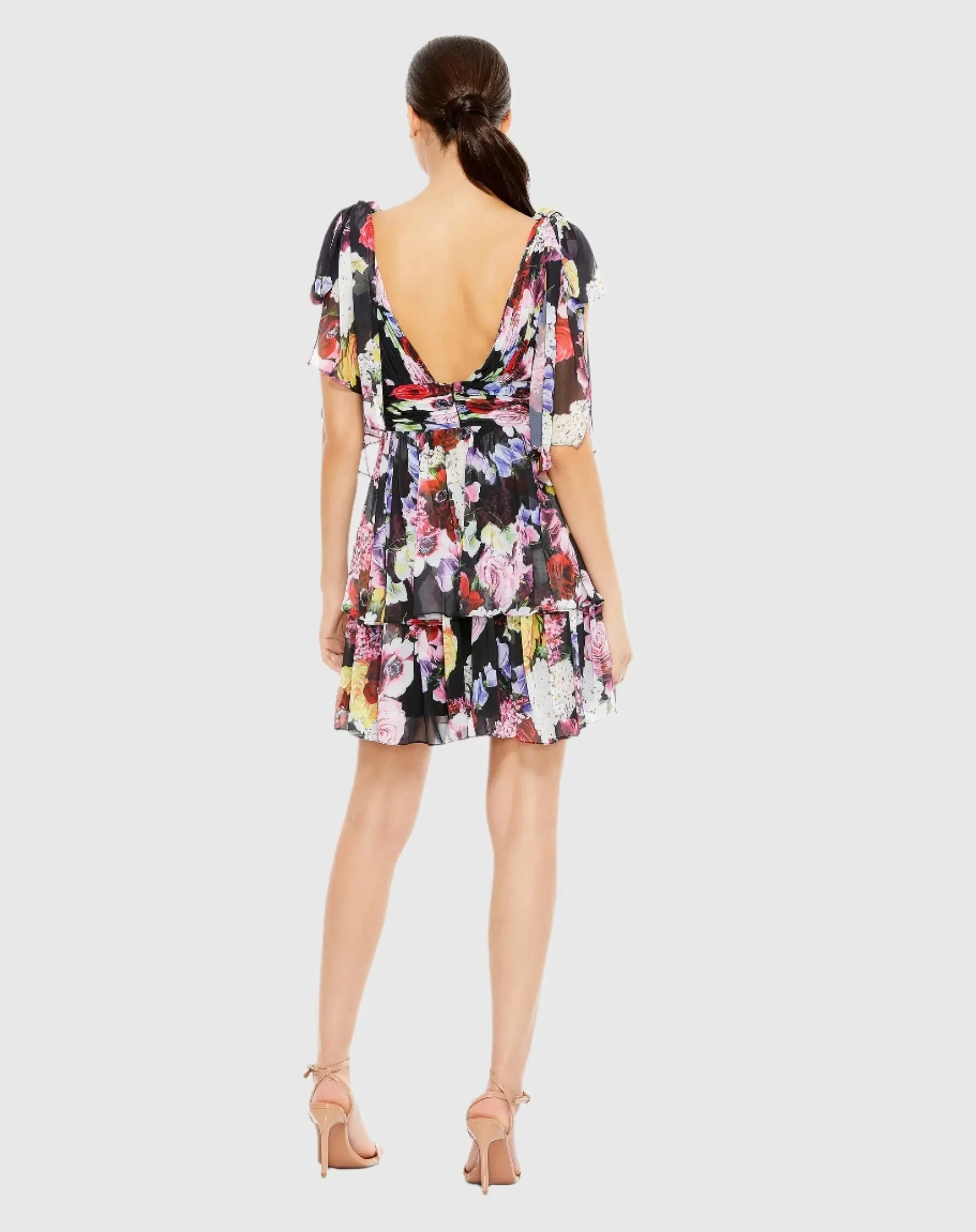 Multicolor Floral Print Ruffled Sleeveless Soft Tie Dress
