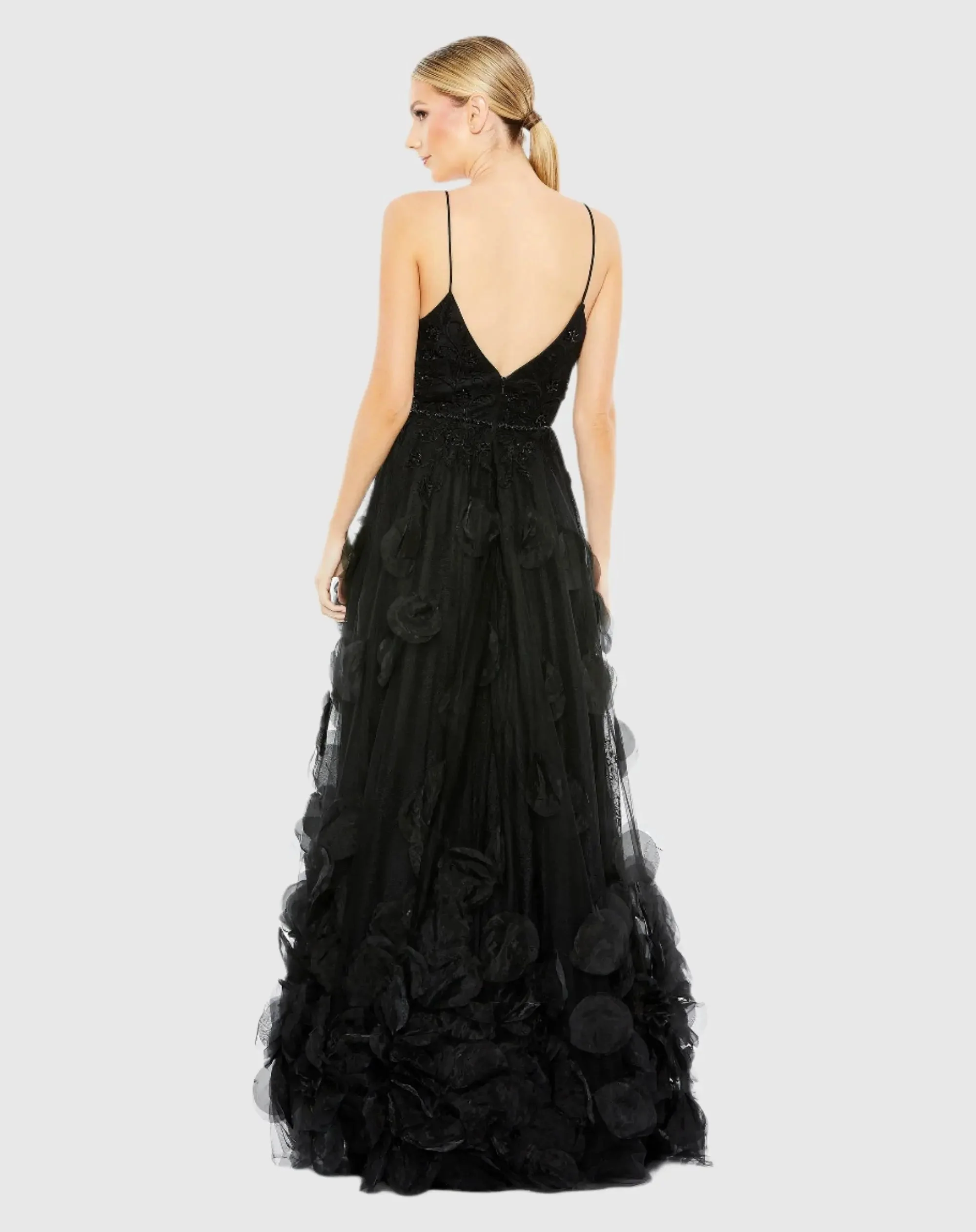 Black Embellished Floral High Low Sleeveless Gown