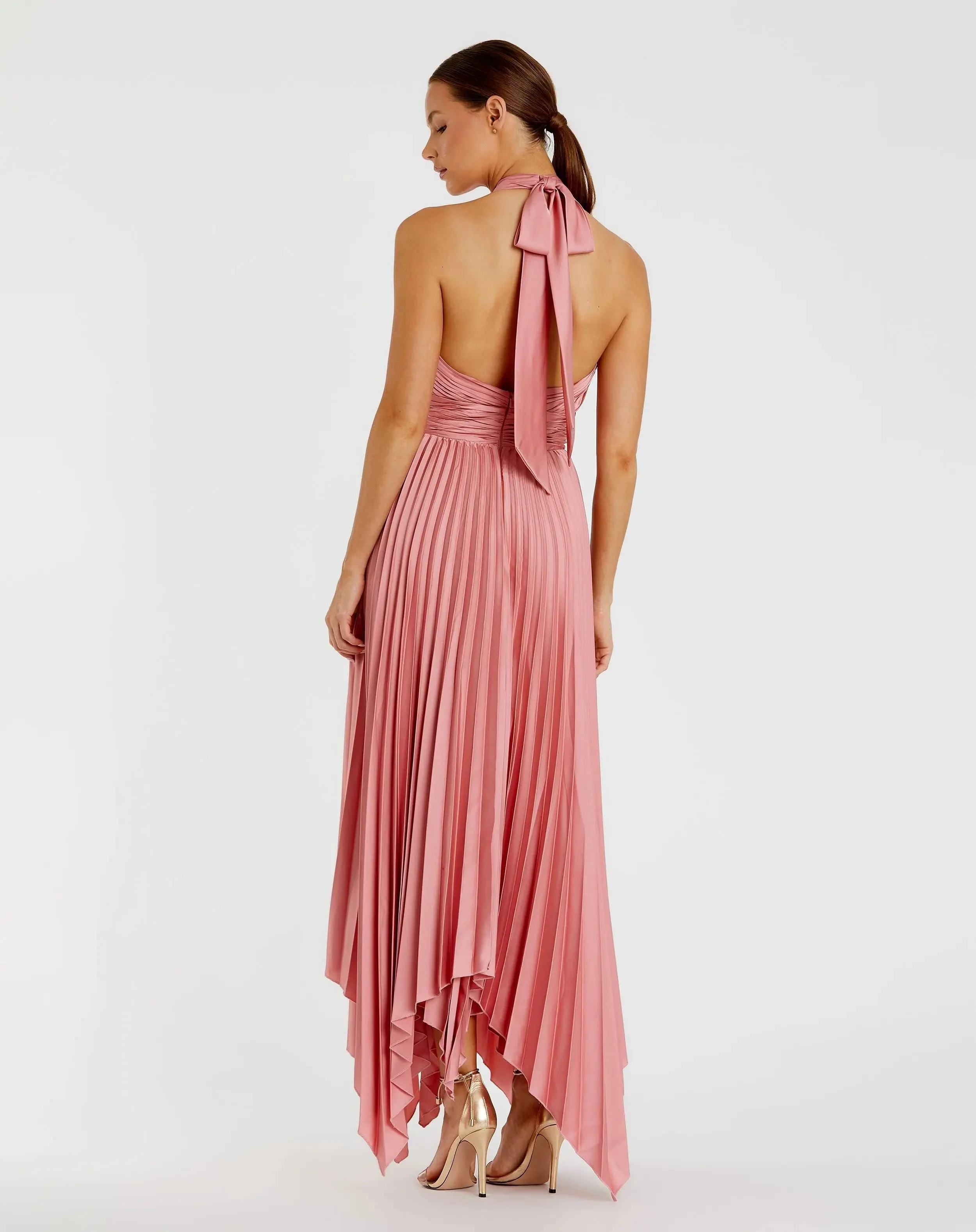 Pink Pleated Halter Neck Asymmetrical Hem Gown - FINAL SALE