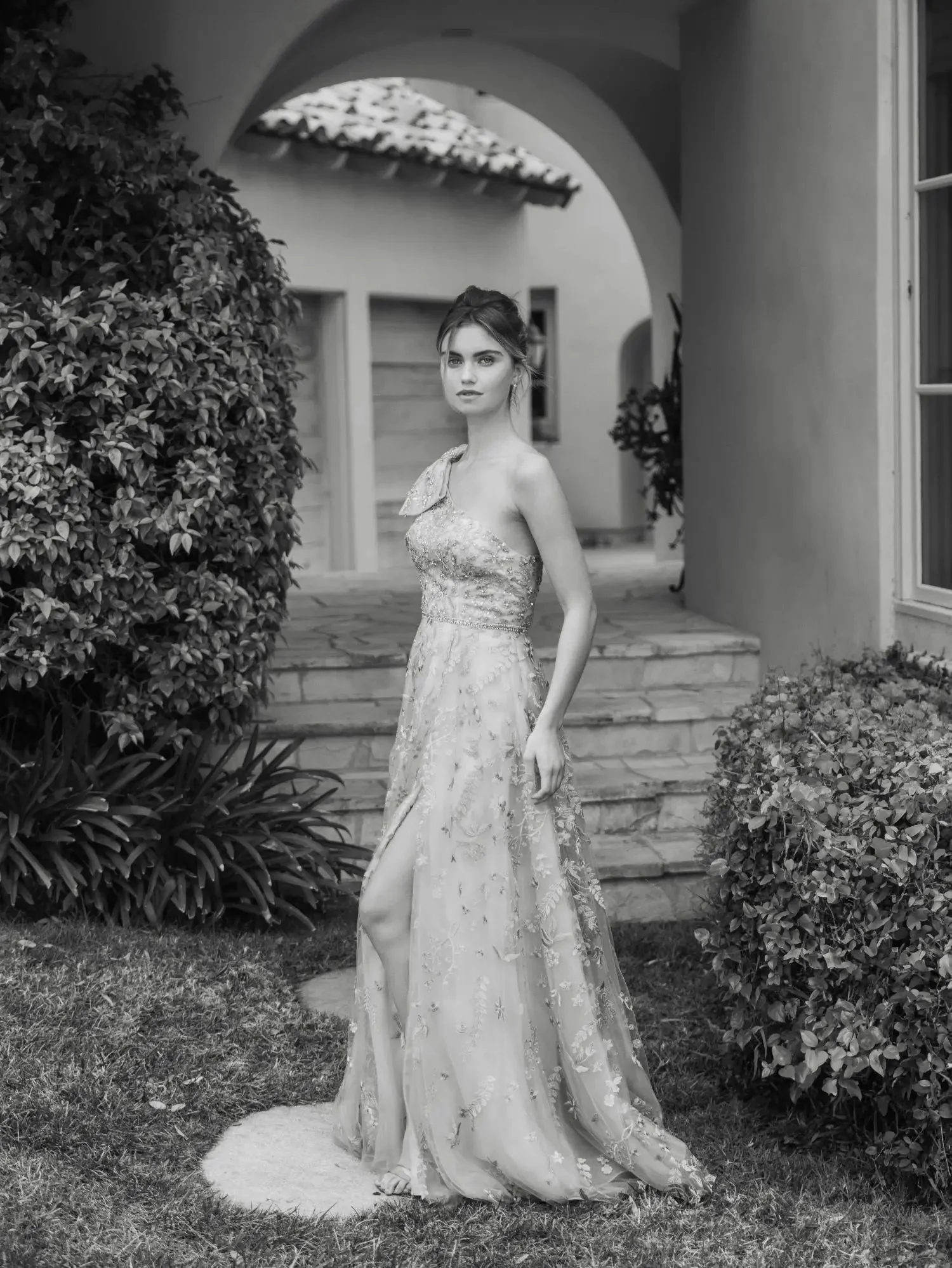 Silver Embellished One Shoulder A Line Gown