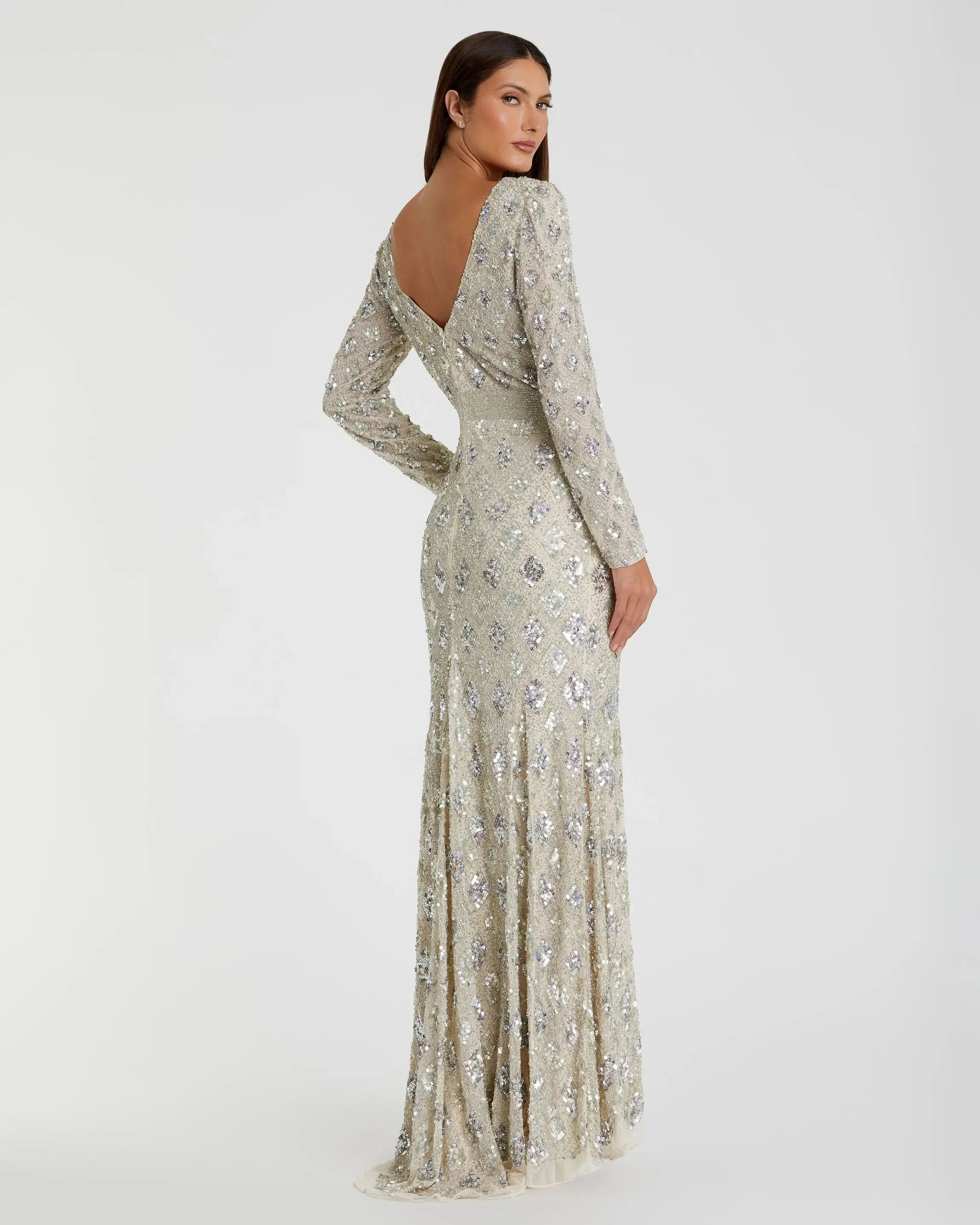 Silver Geometric Embellished Evening Gown