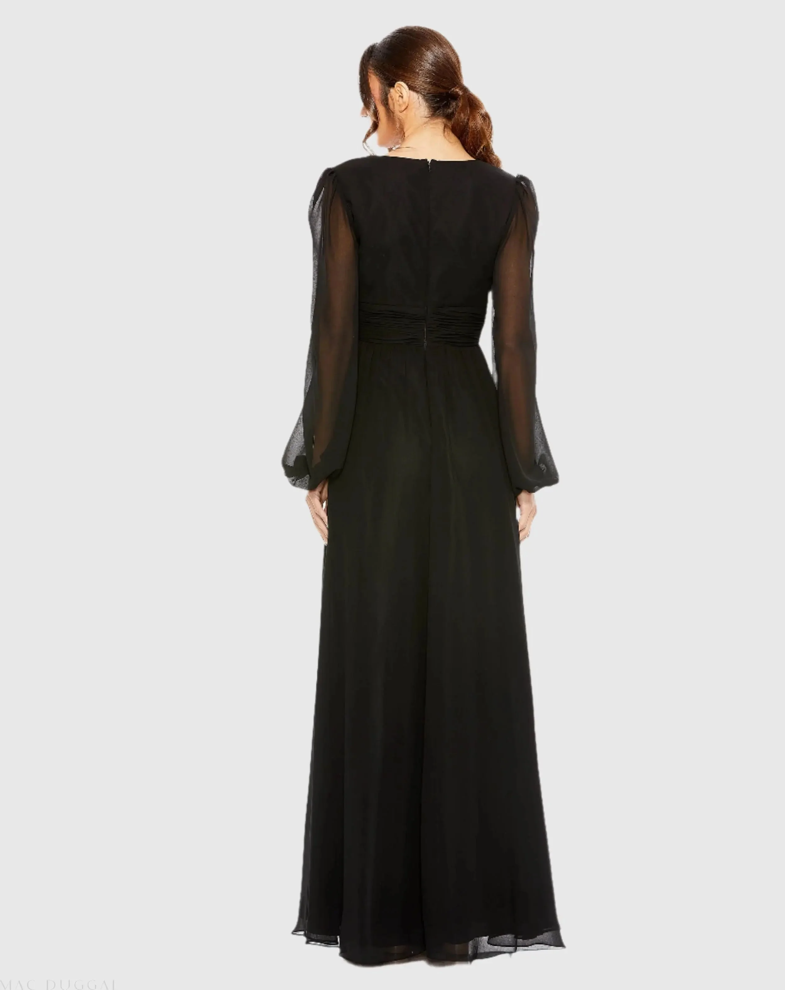 Plunge Neck Lace Up Evening Gown - FINAL SALE