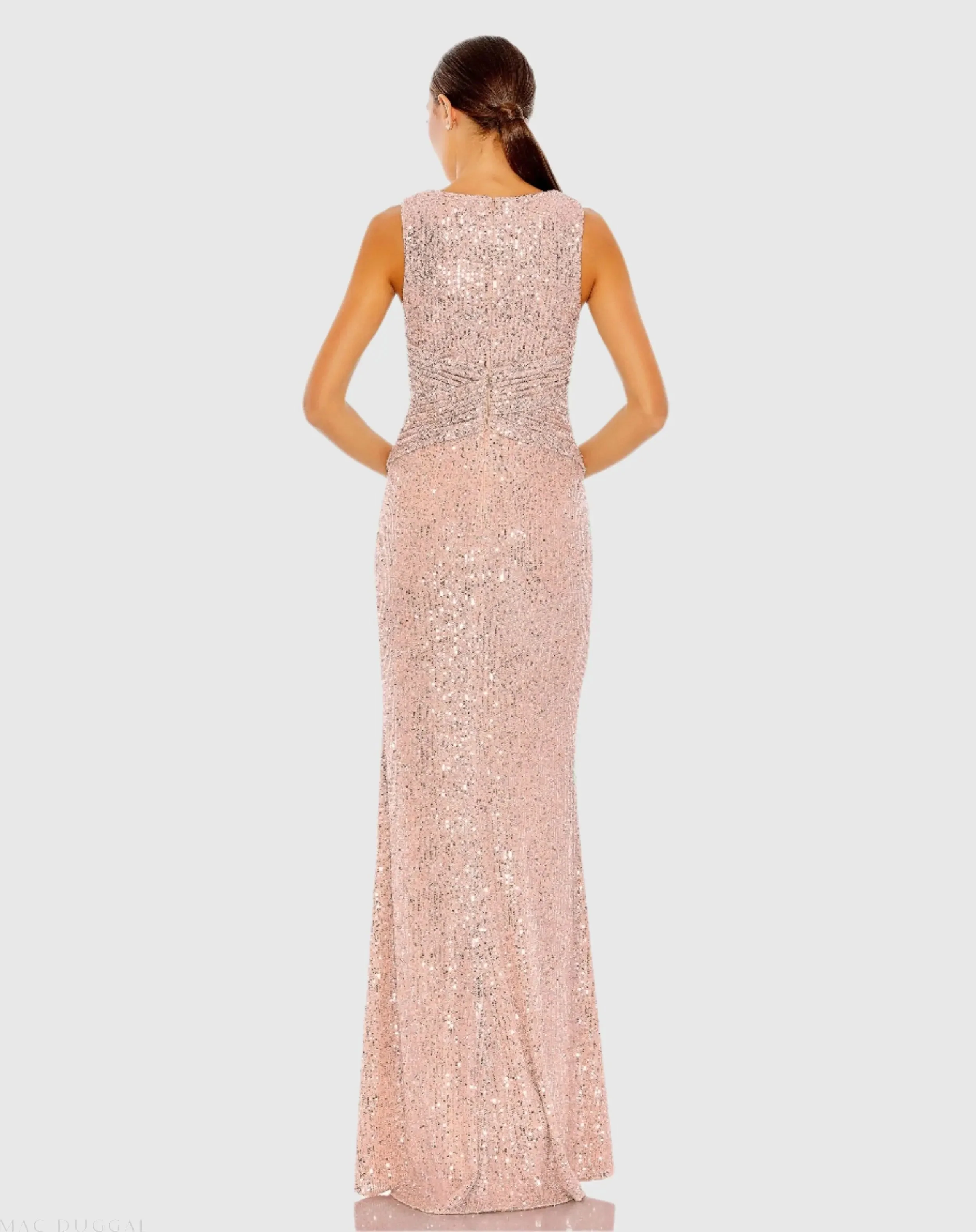 Pink V-Neck Sequin Wrap Waist Gown