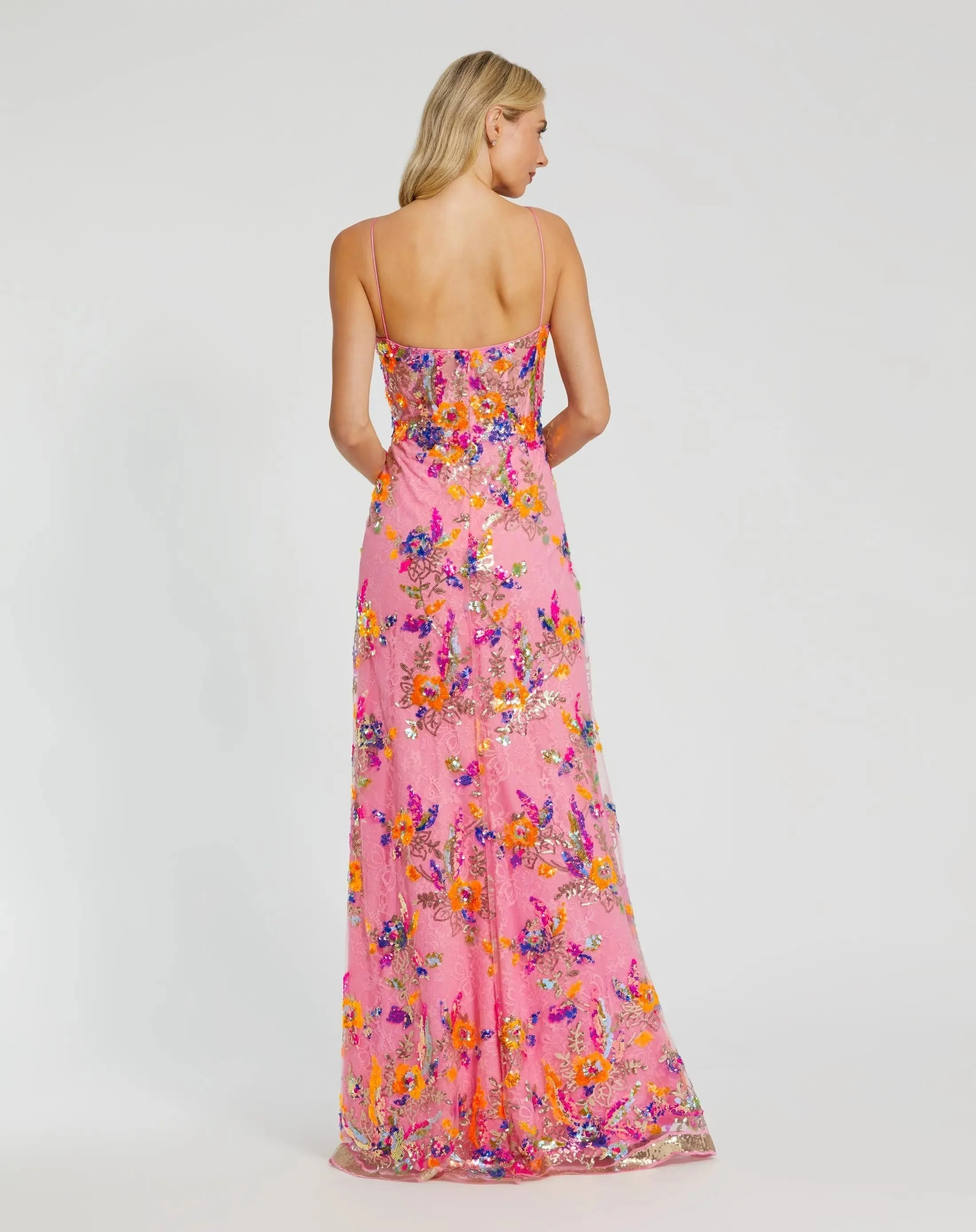 Pink Floral Sequin Lace Gown with Sweetheart Neckline
