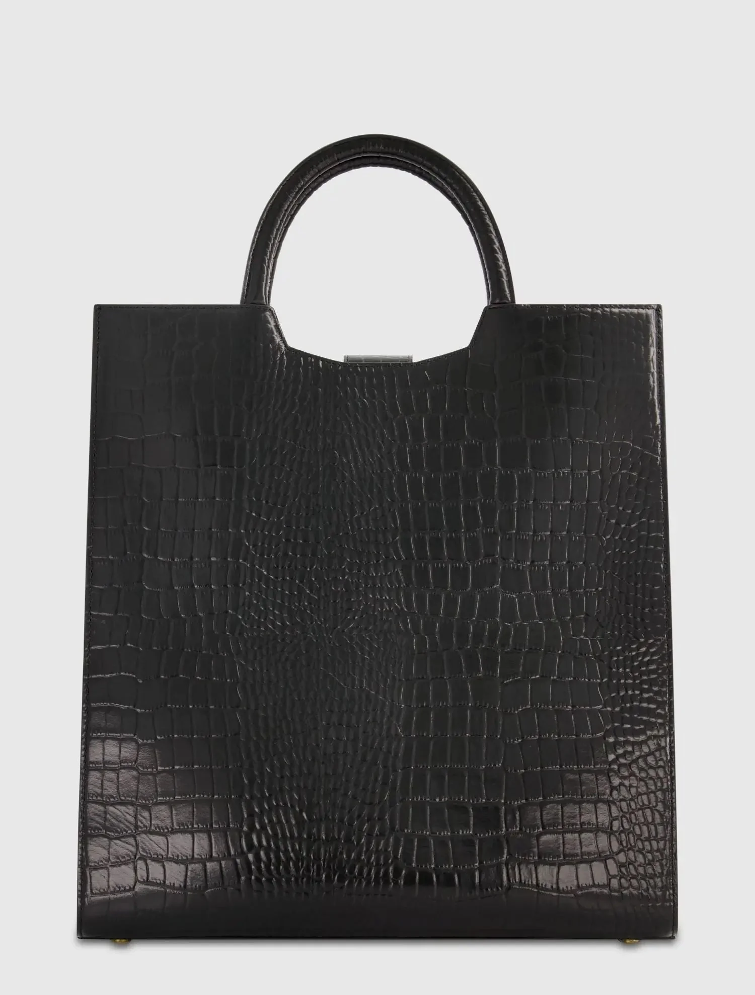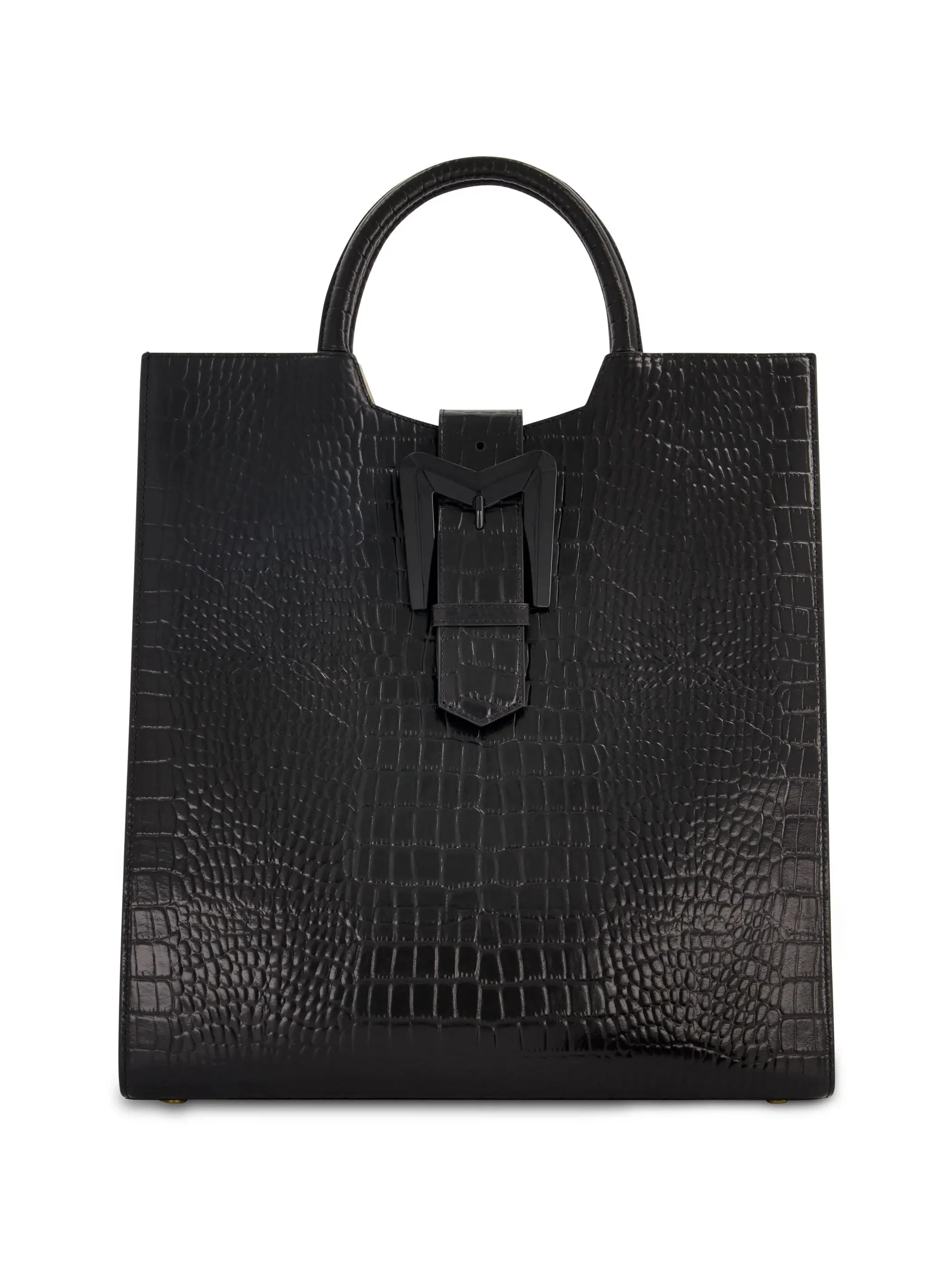 Black Buckled Maxi Croco Leather Tote Bag