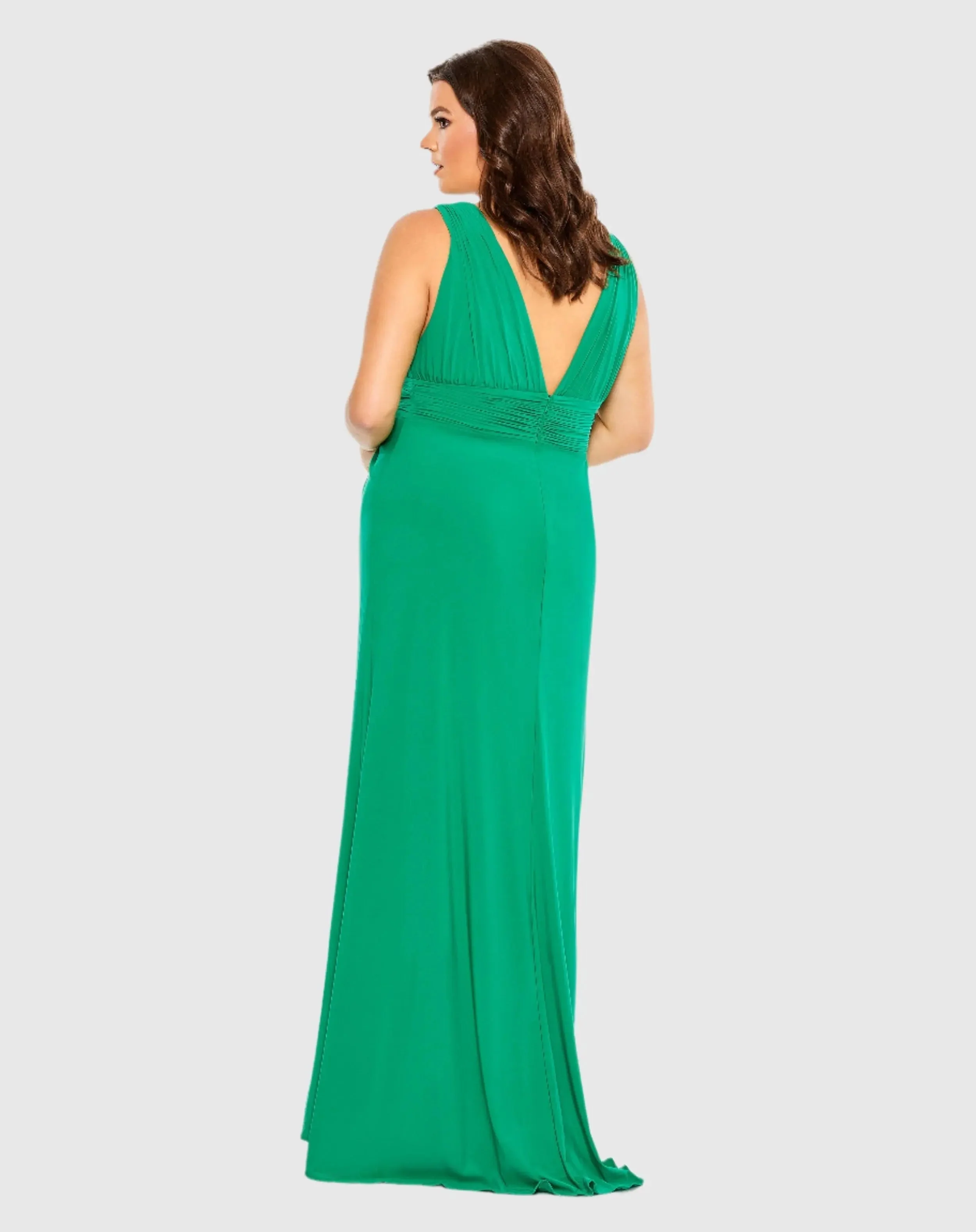 Green Plus Size Draped V Neck Sleeveless A Line Gown