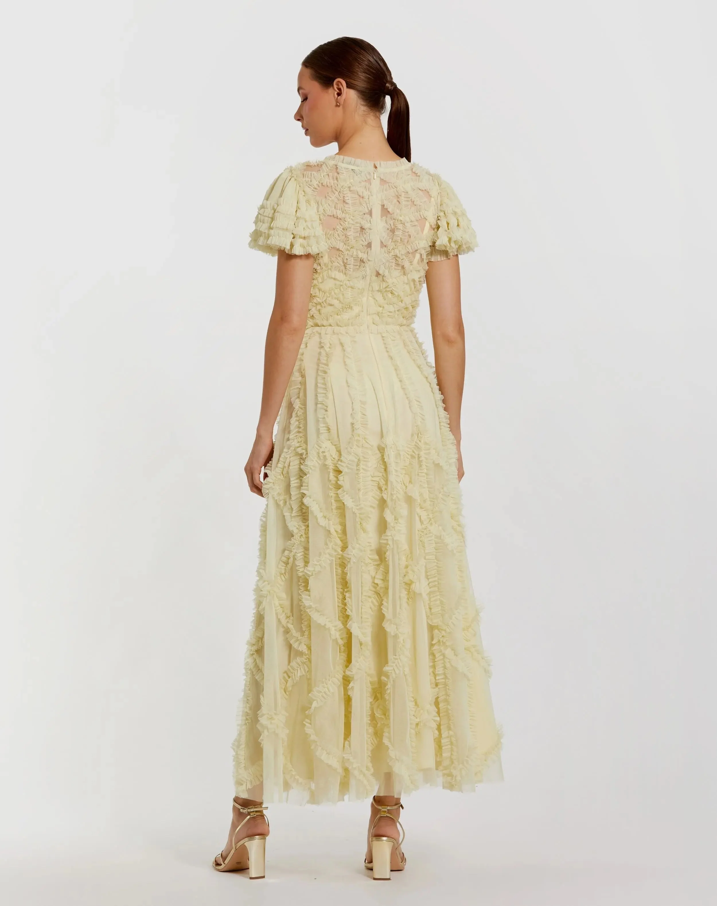 Yellow A-line Micro Ruffle Midi Dress