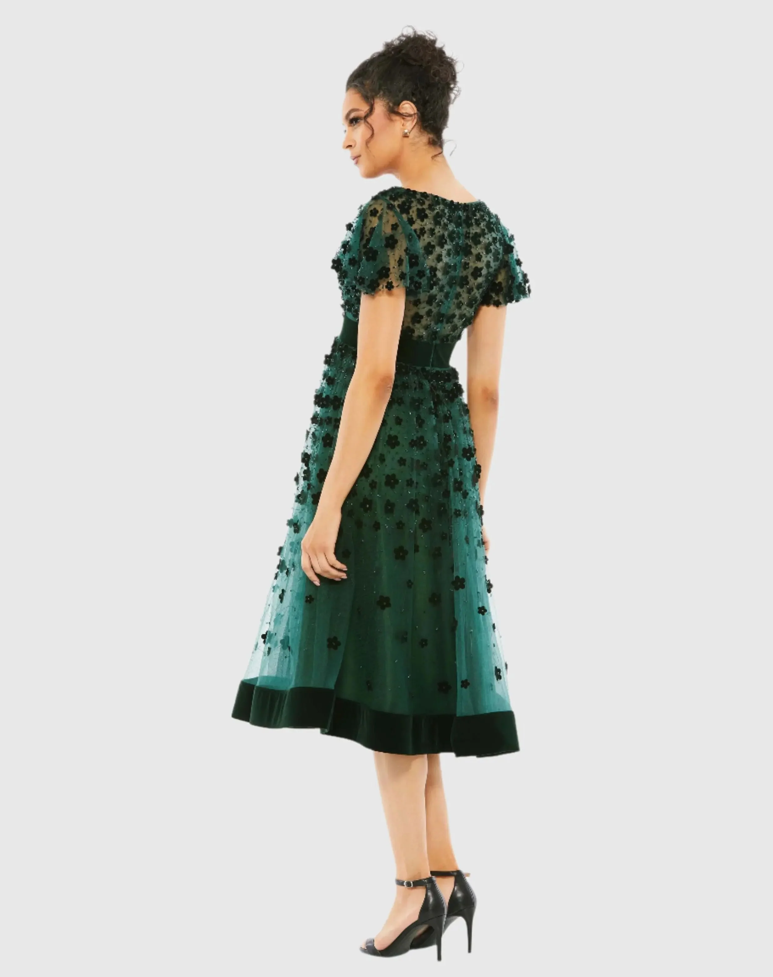 Green Embellished Butterfly Sleeve Velvet Hem Midi Dress