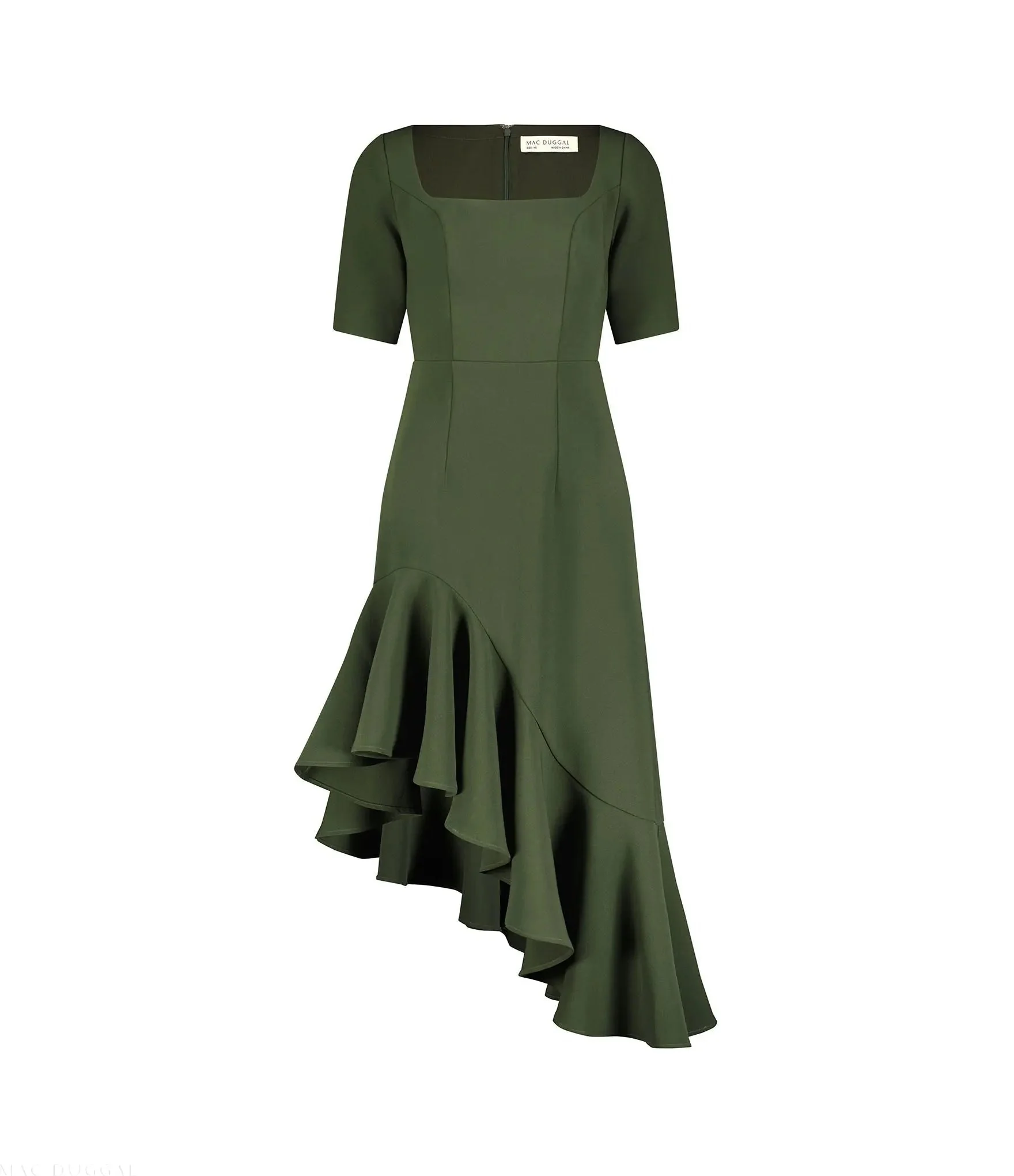 Green Crepe 3/4 Sleeve Asymmetrical Hem Dress - FINAL SALE