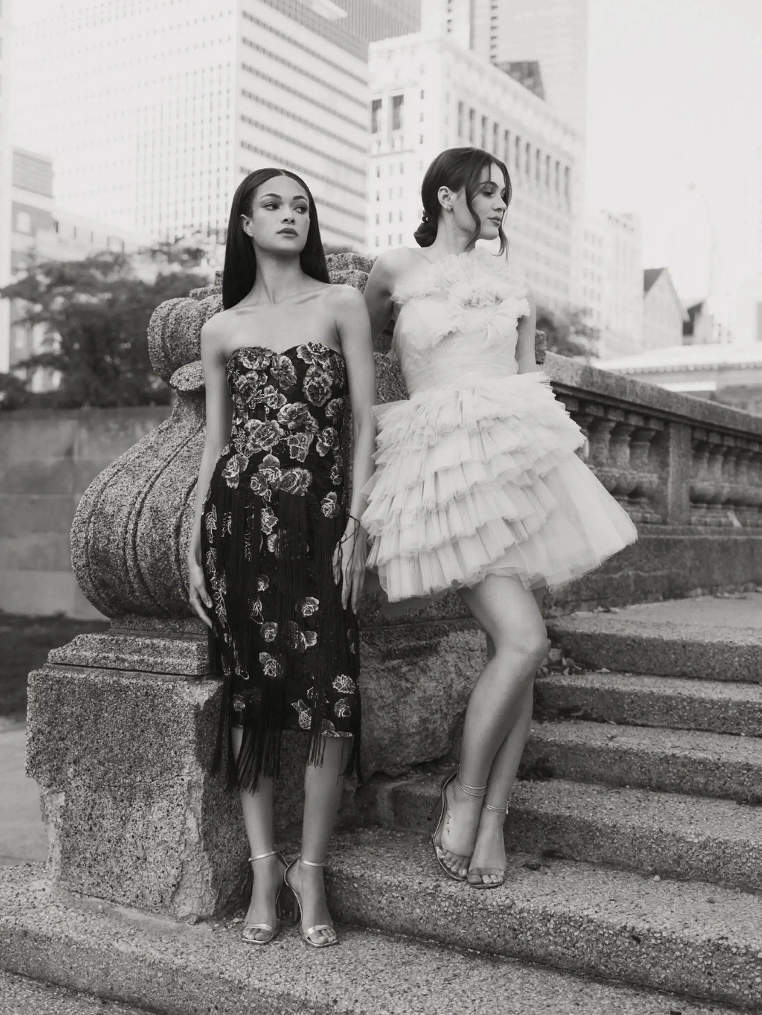 Black Strapless Floral Embroidered Midi Dress With Fringe Detailing