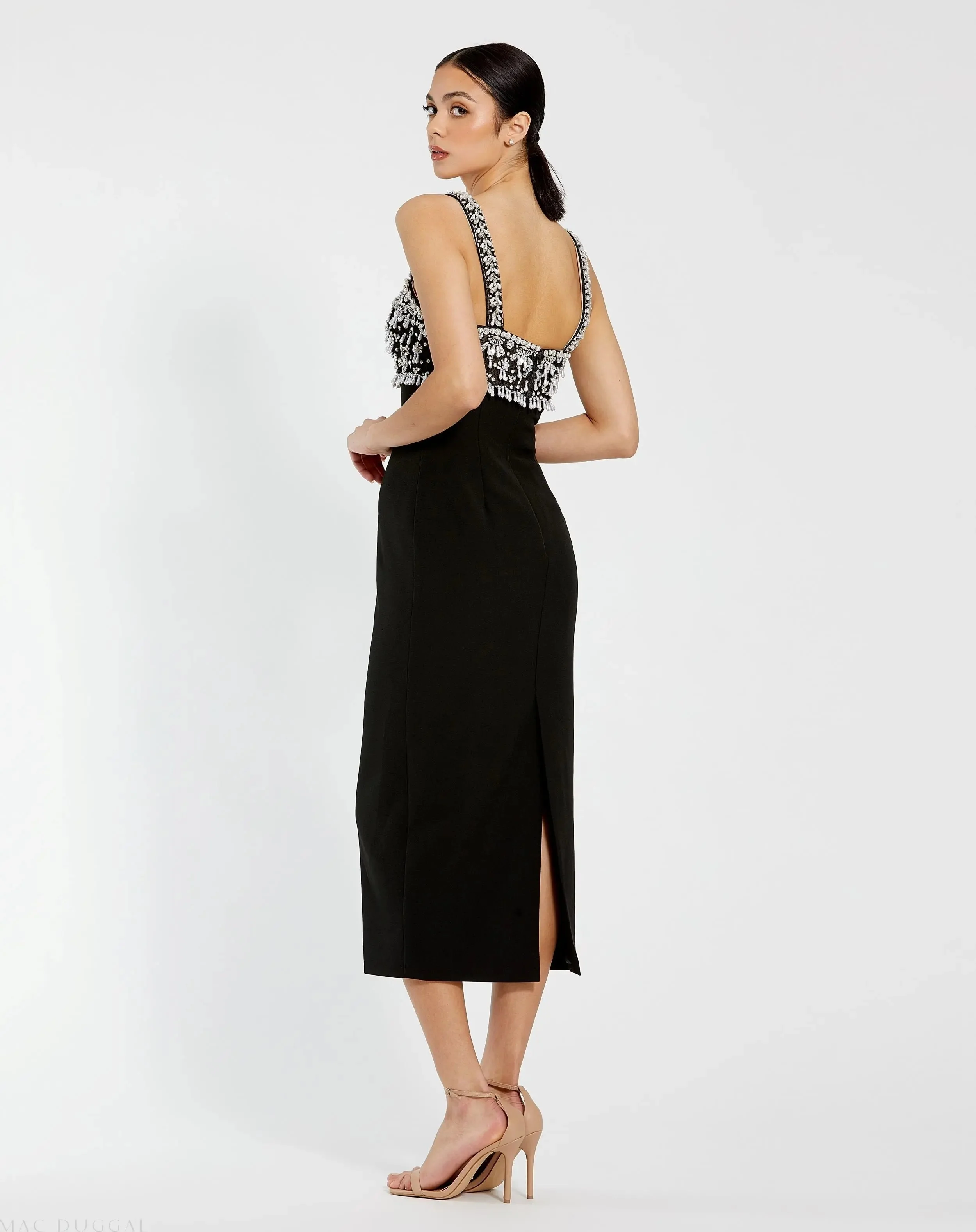 Pink Cap Sleeve Sheath Midi Dress With Floral Beading