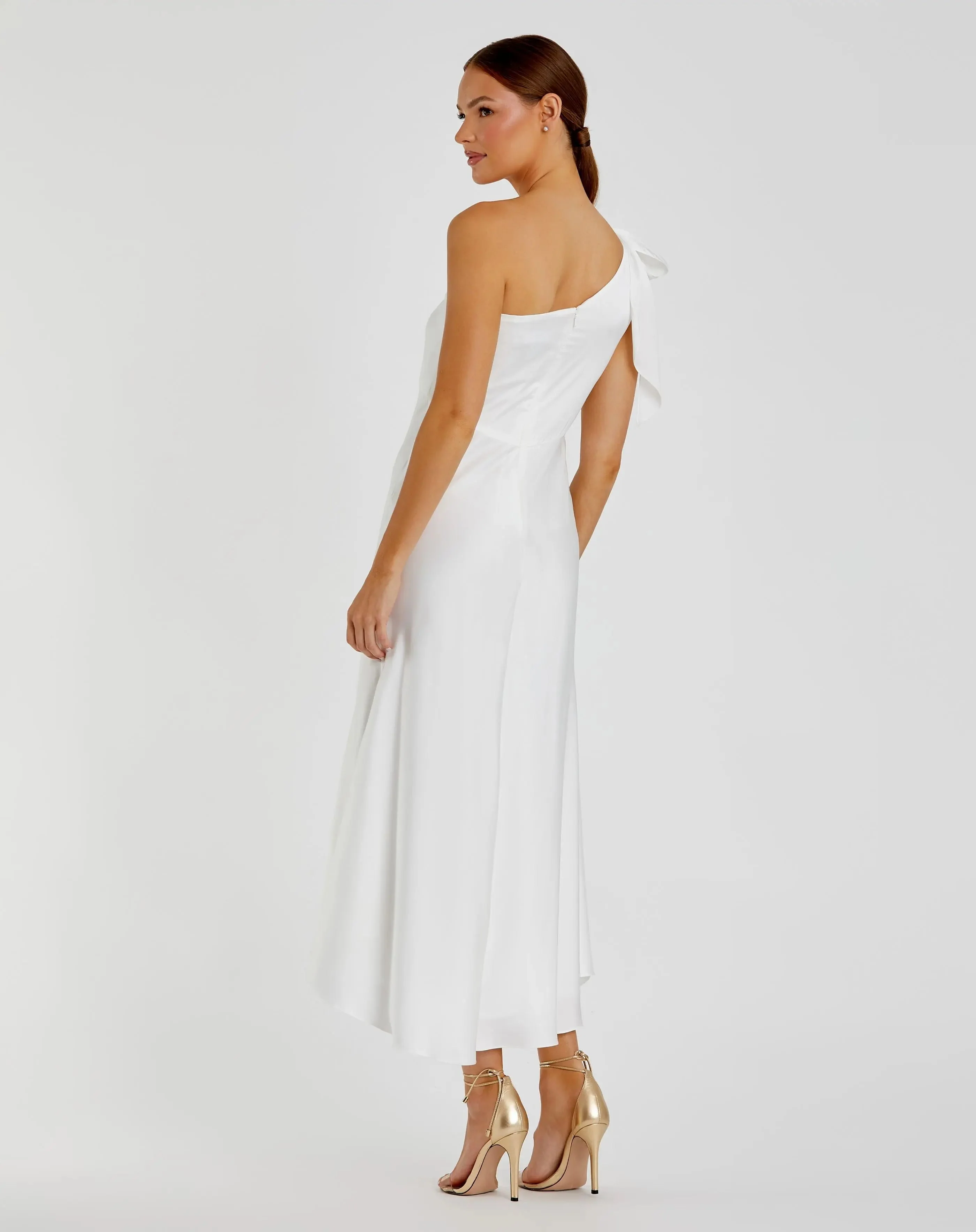 White Satin One Shoulder Midi Dress - FINAL SALE