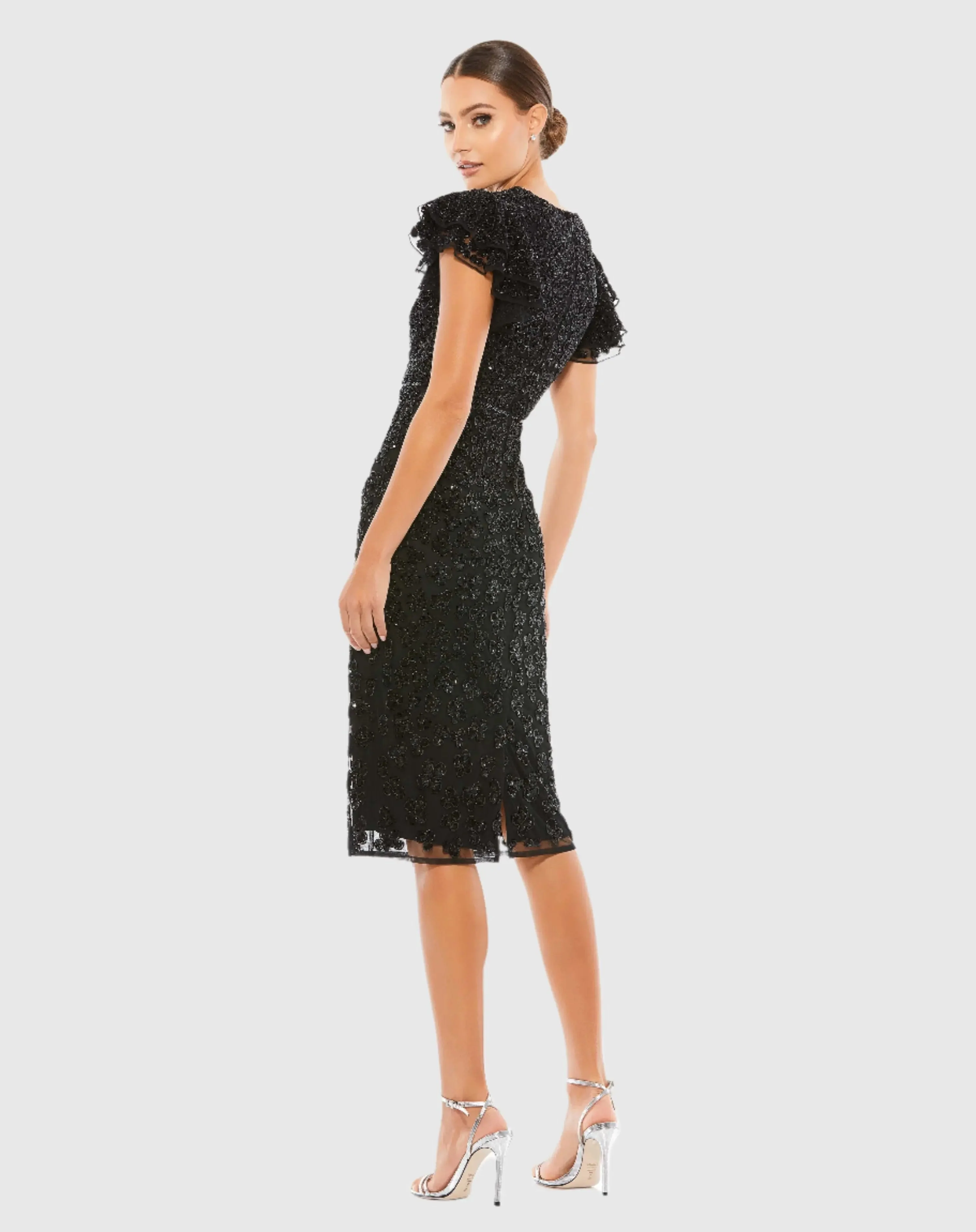 Flounce Sleeve Beaded Midi Dress