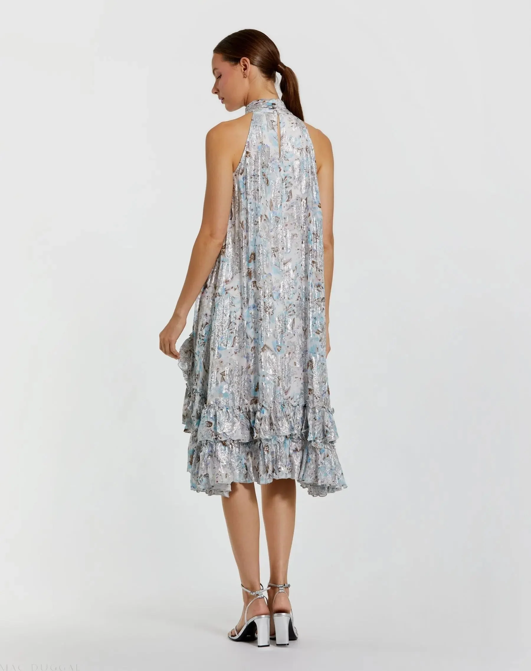Multicolor Floral High Neck Keyhole Ruffle Mini Dress