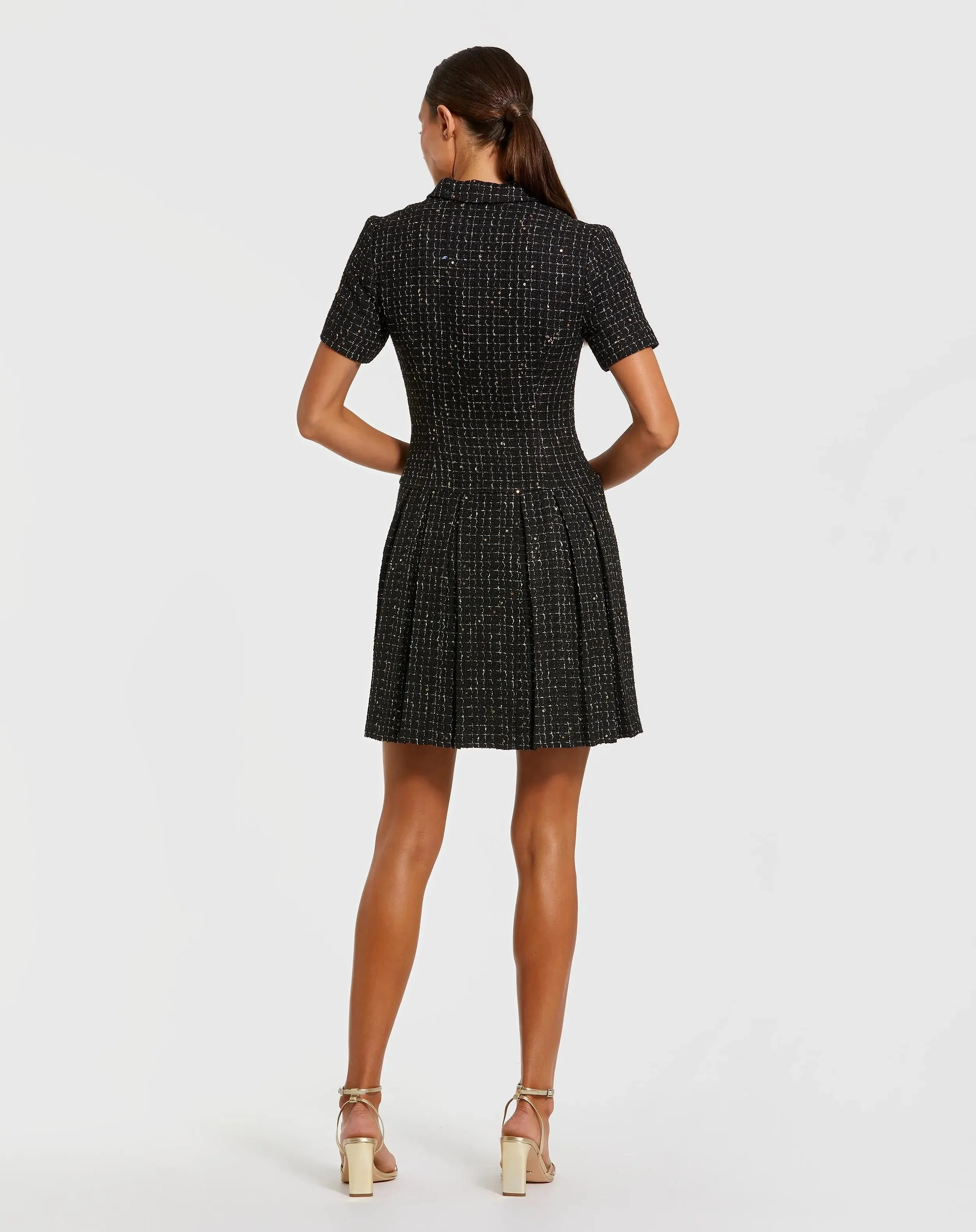 Black Short Sleeve V Neck Tweed Blazer Mini Dress