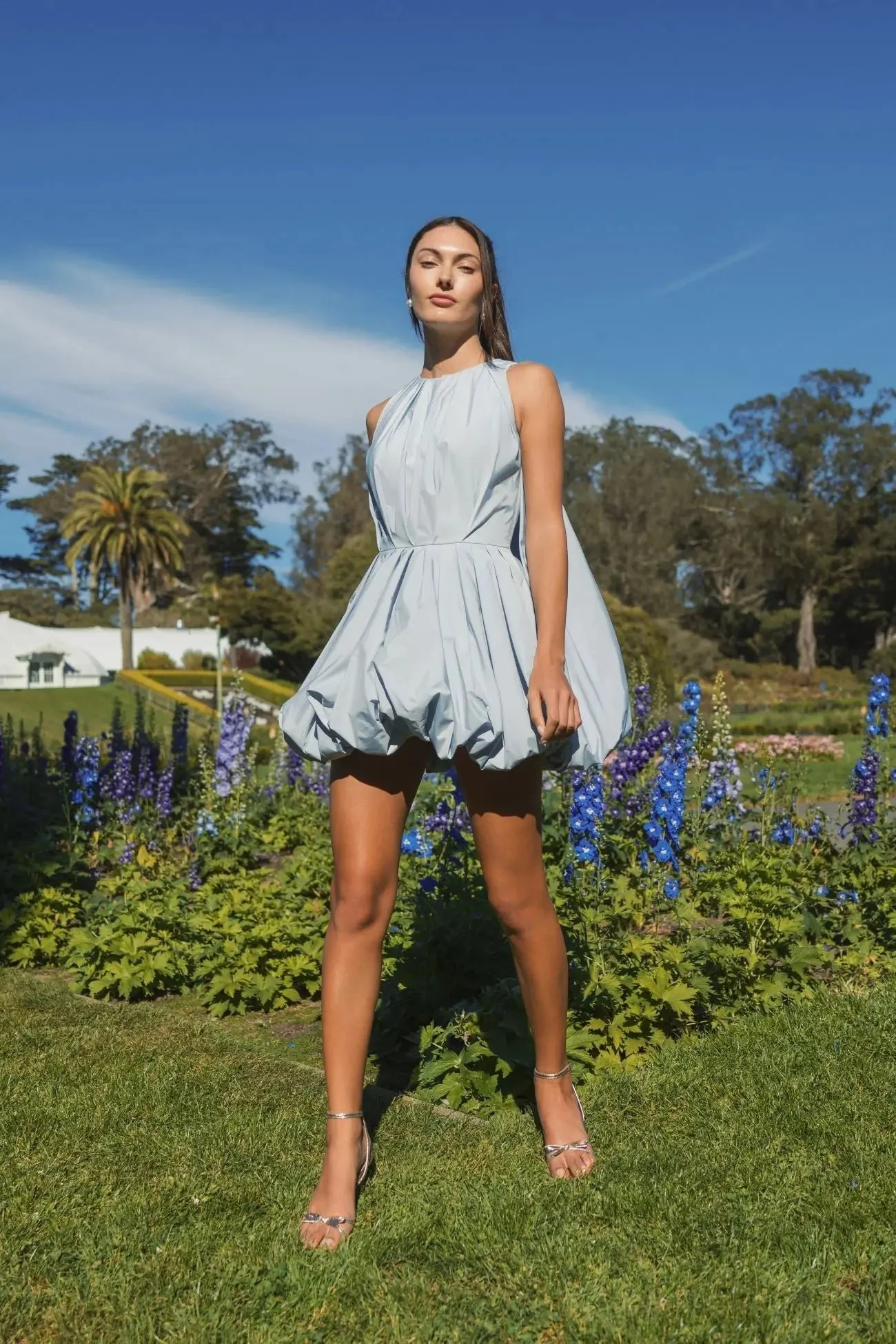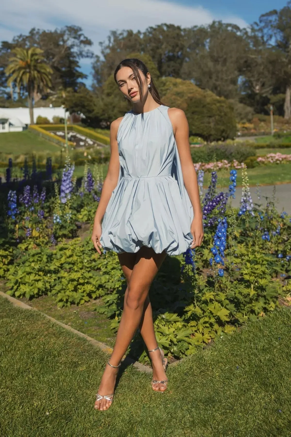 Blue Sleeveless Taffeta Bubble Mini Dress