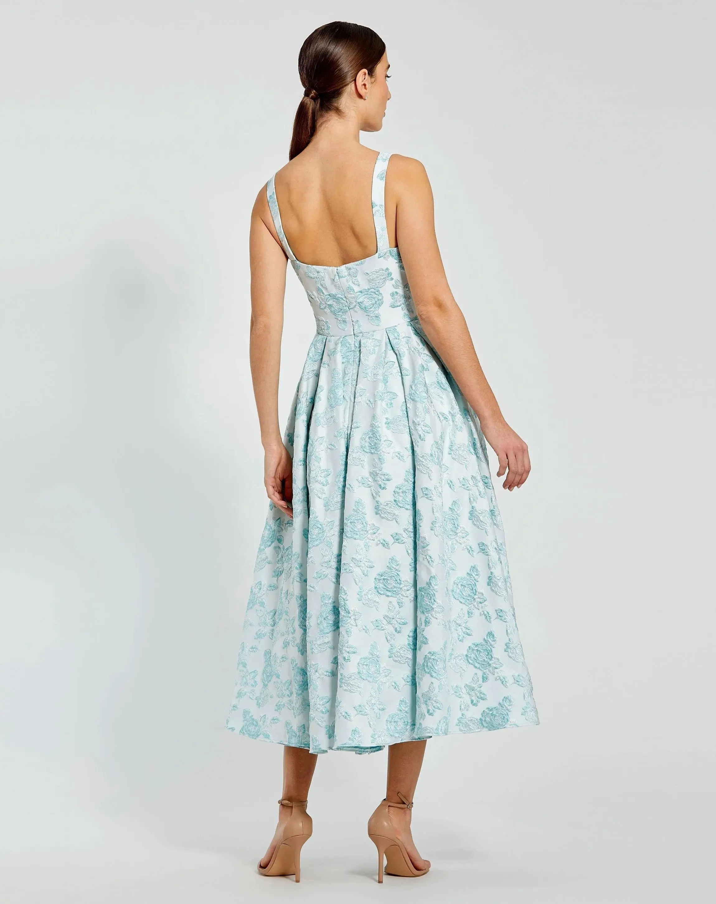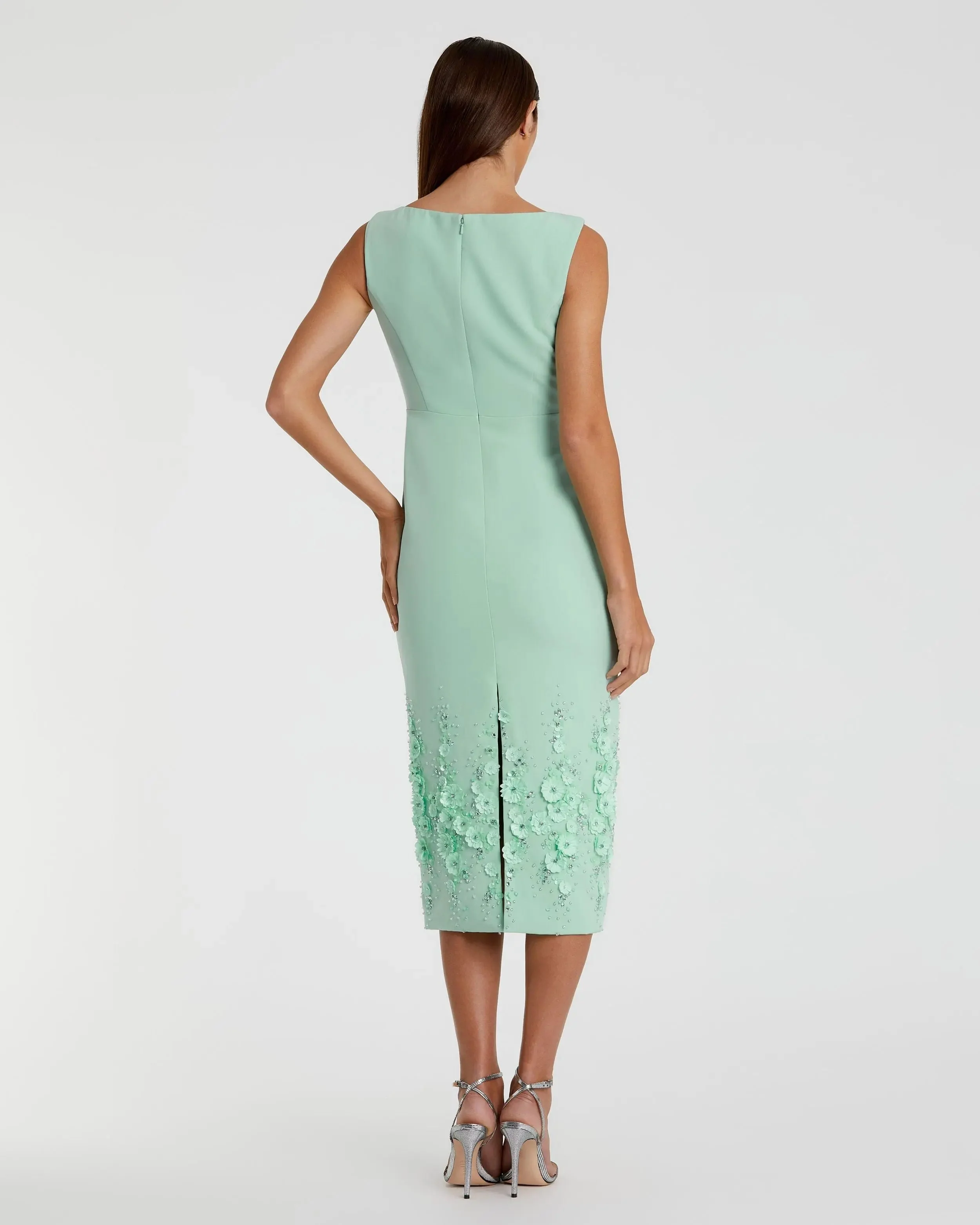 Sage Green Sleeveless Embroidered Trumpet Midi Dress