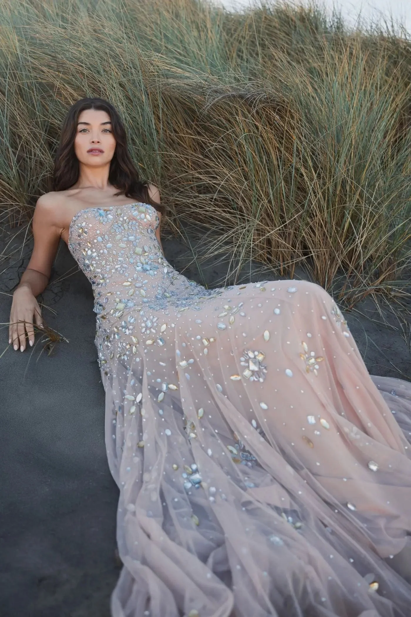 Yellow and Pink Strapless Corset Ombre Tulle Ballgown
