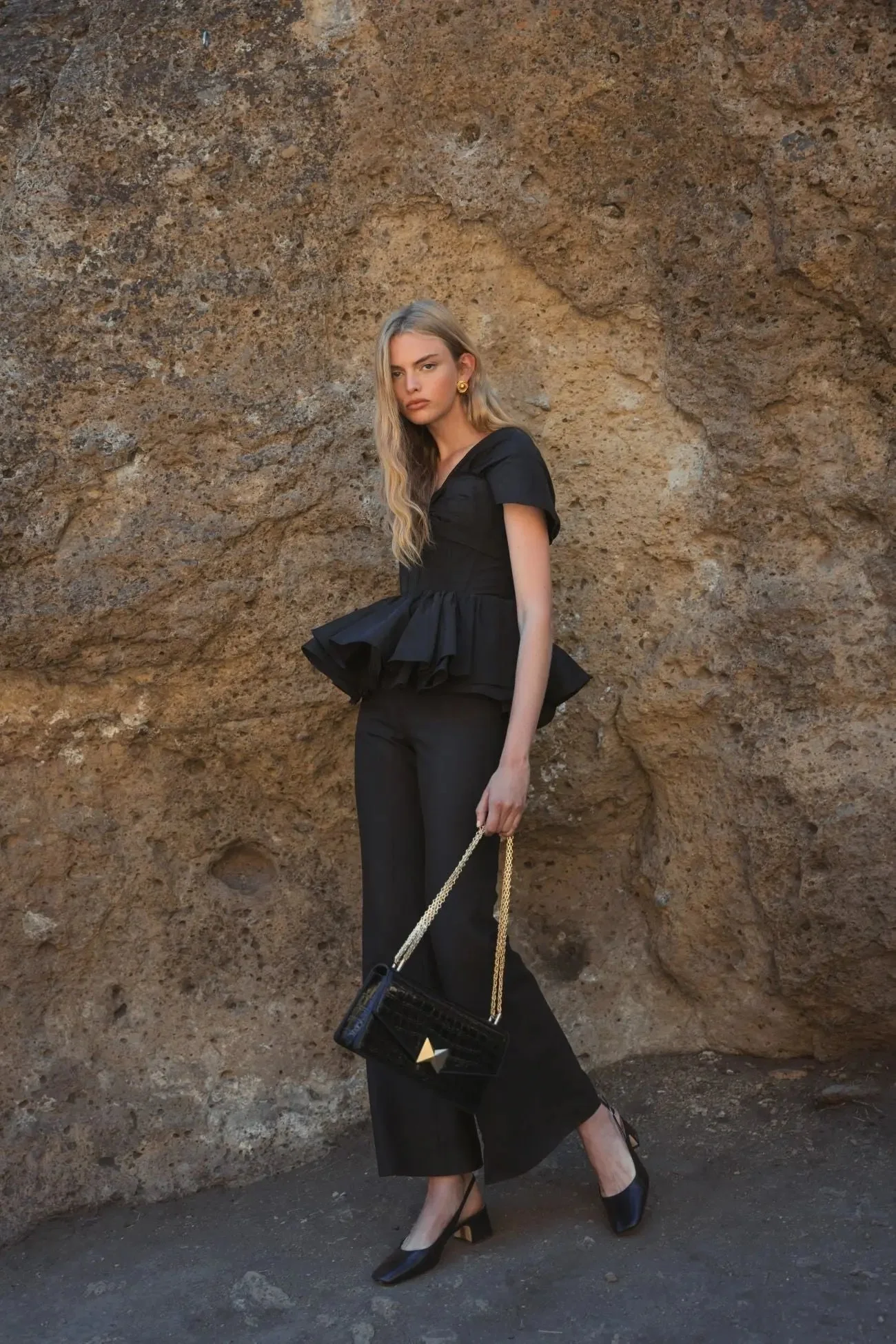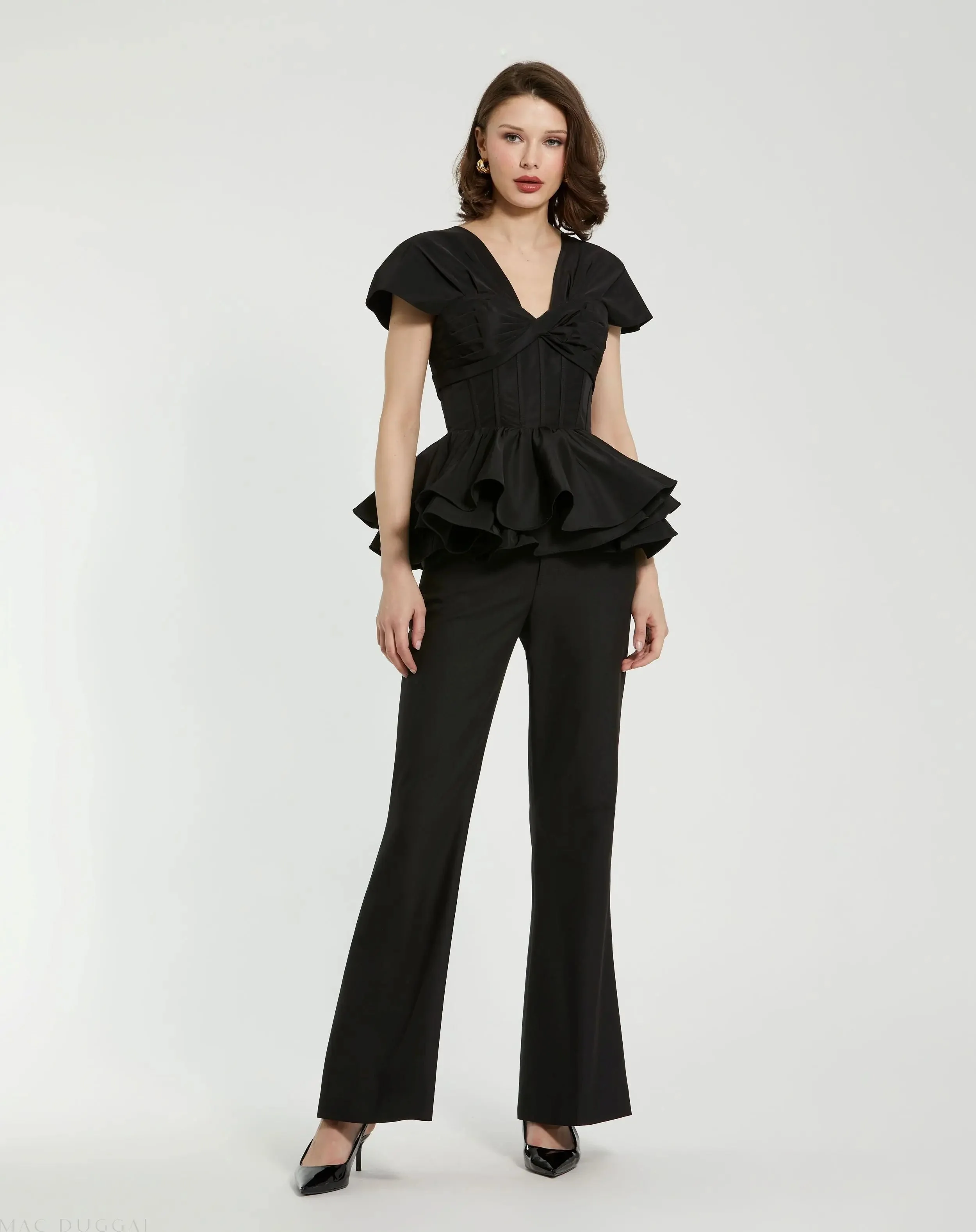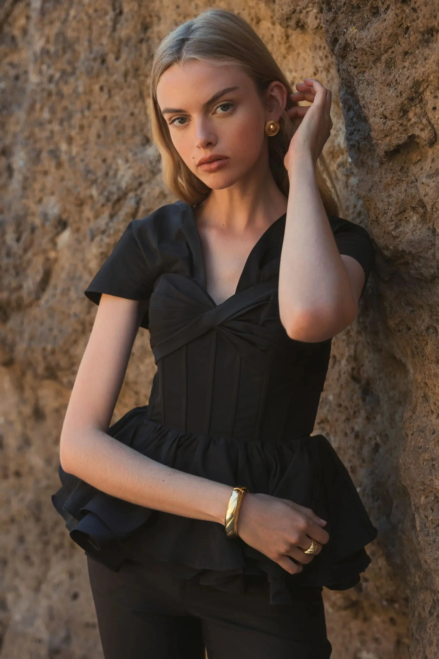 Black Faille Twist Bustier Peplum Top
