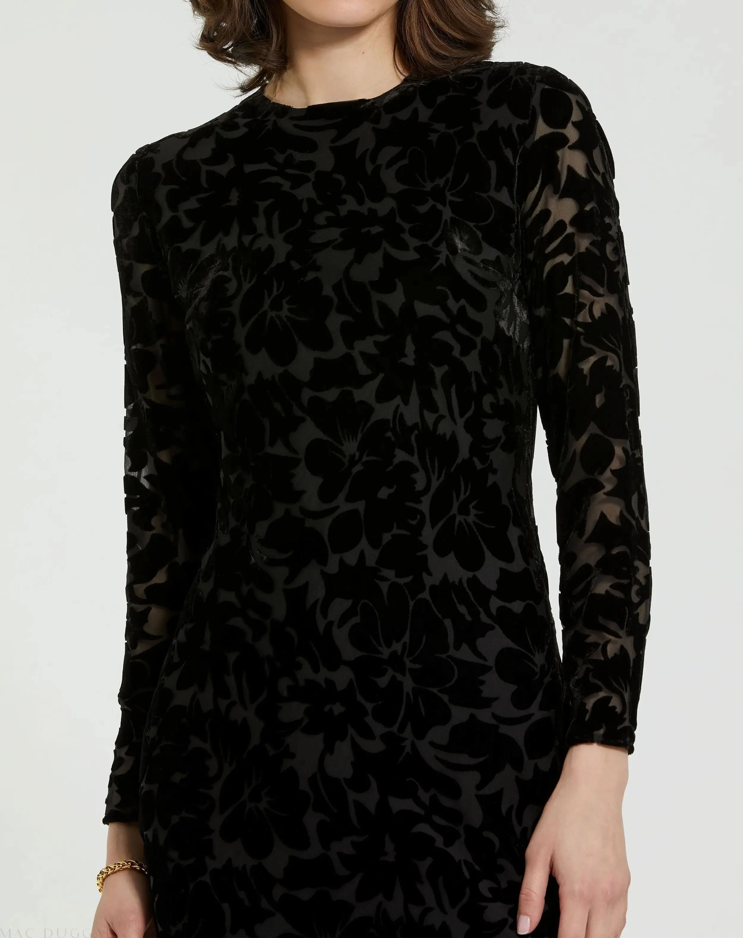 Black Long Sleeve Sheer Embellished Mini Dress