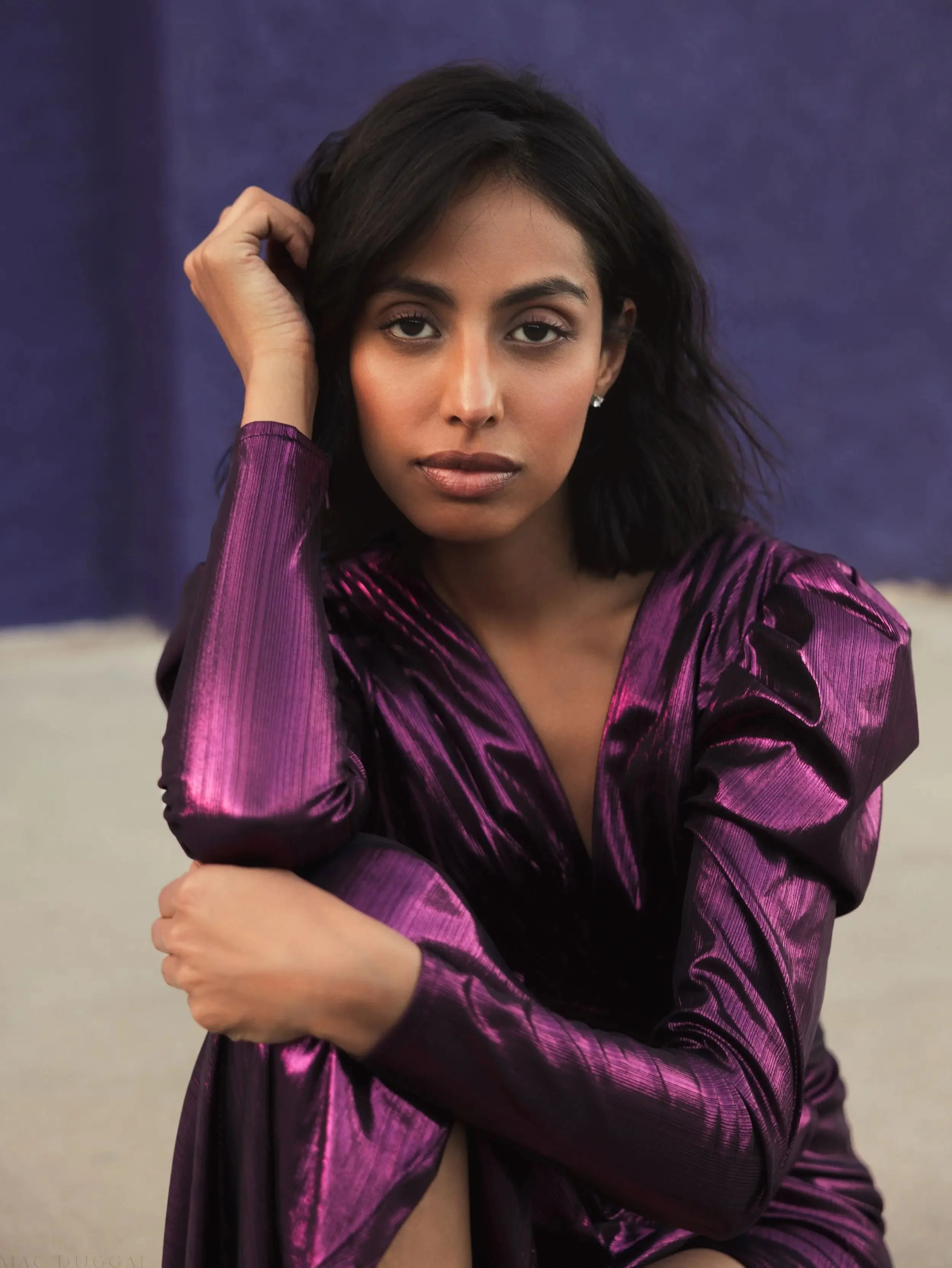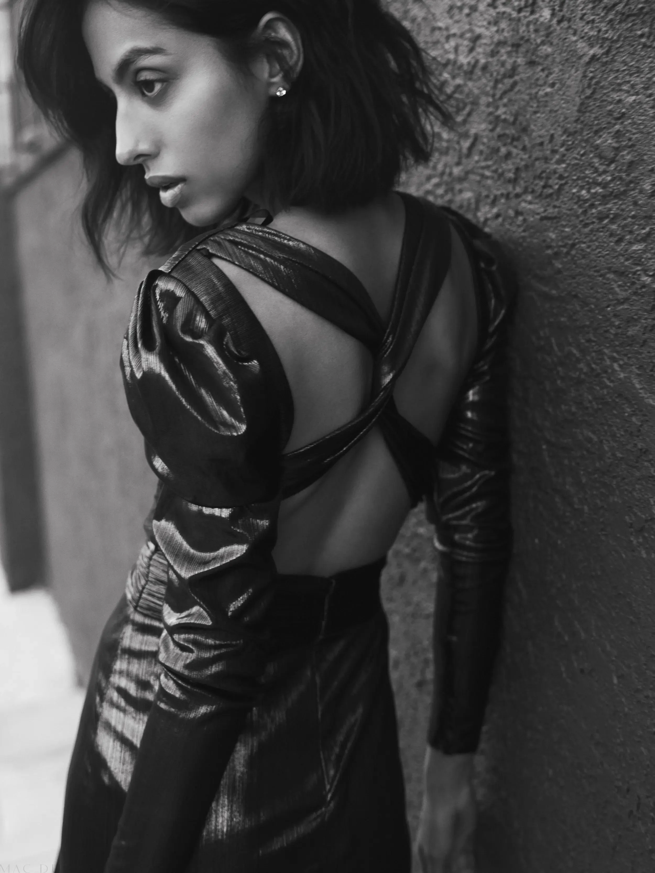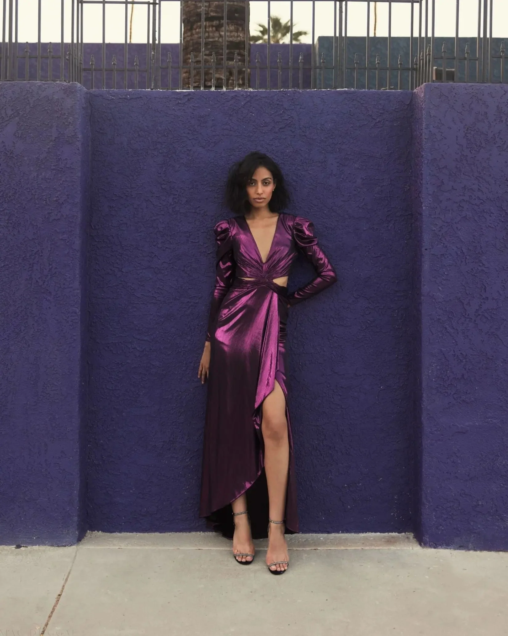 Black Crystal Embellished Long Sleeve V Neck Gown