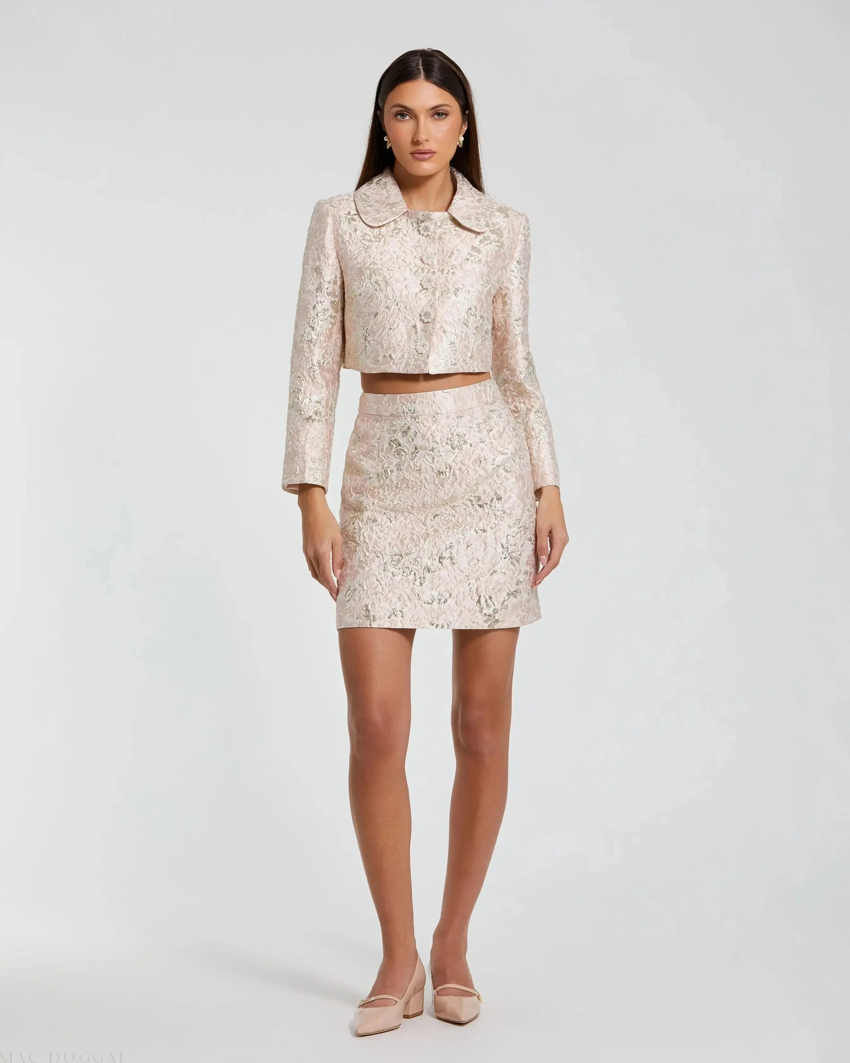 Pink Pearl Button Brocade Cropped Jacket