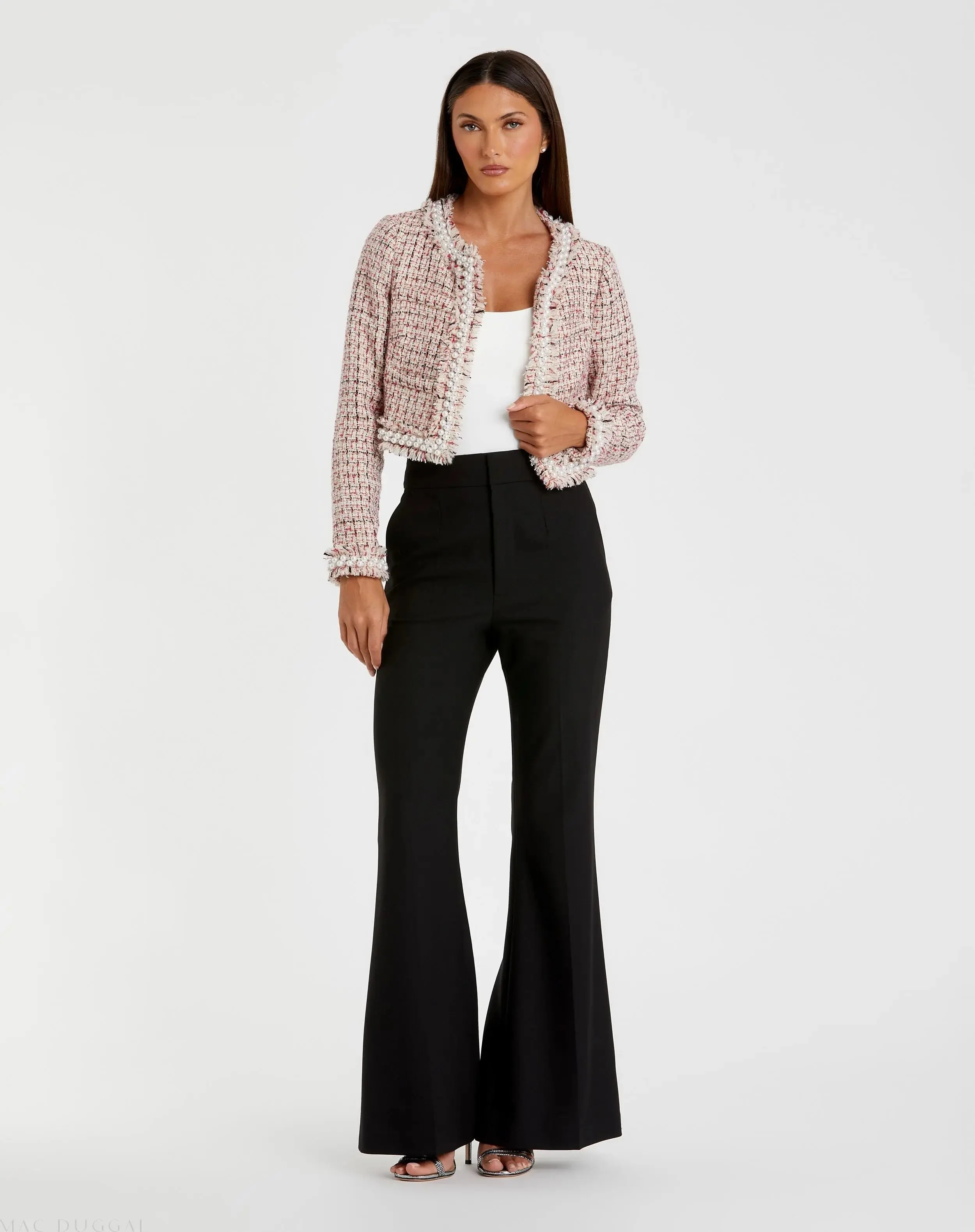 Multicolor Pearl Trim Long Sleeve Cropped Jacket